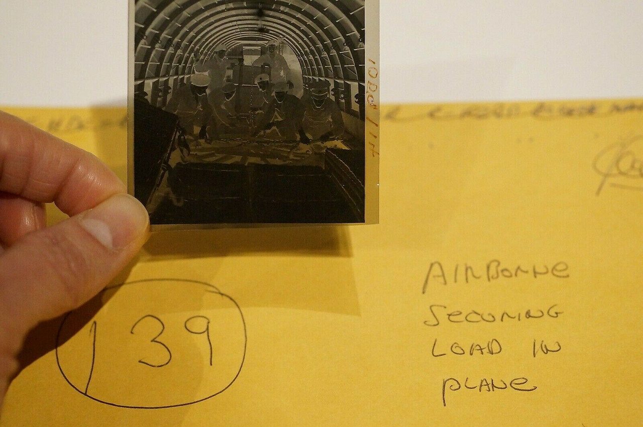 Title: WW2 British Airborne Para Securing Load in Plane Original Negative #139 Description: Discover a significant piece of history with this vintage WW2 British Airborne Para Securing Load in Plane Original Negative. This black and white 120 (medium format) cut negative captures an authentic moment from World War II, showcasing a British paratrooper securing equipment inside an aircraft. The photograph encapsulates the meticulous preparation and valor of the airborne forces during one of the most crucial periods in history. This original negative, preserved in excellent condition, is a remarkable artifact for collectors, historians, and enthusiasts of military history. It is available for international shipment, making it accessible to admirers worldwide. Please note, a GST of 5% applies to all sales within Canada. For further inquiries or to make a purchase, feel free to call us at 647-436-0876. Own a piece of the past with this extraordinary collectible.