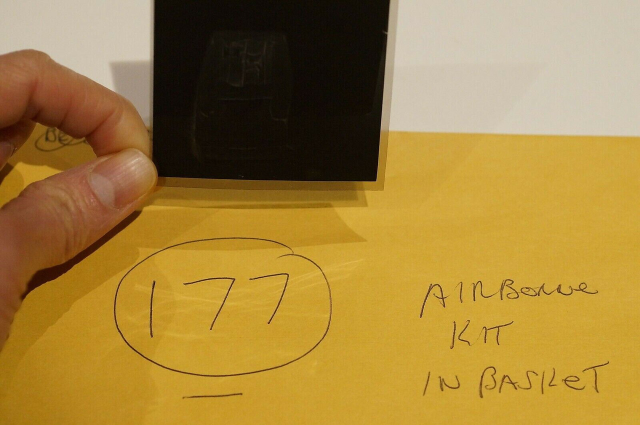 This listing features an original vintage World War II British Airborne Para Supplies Kit contained in a basket, captured in a black and white 120 medium format cut negative. Designated as Negative #177, this rare piece offers a fascinating glimpse into the gear utilized by British paratroopers during the war. The negative is in excellent condition, preserving the historical significance and vivid details of the supplies kit. Perfect for collectors and history enthusiasts, this negative serves as a unique artifact from a pivotal era. Shipping is available worldwide, with a GST of 5% applicable on all sales within Canada. For inquiries, please call 647-436-0876. Don’t miss the opportunity to own this exceptional piece of military history.