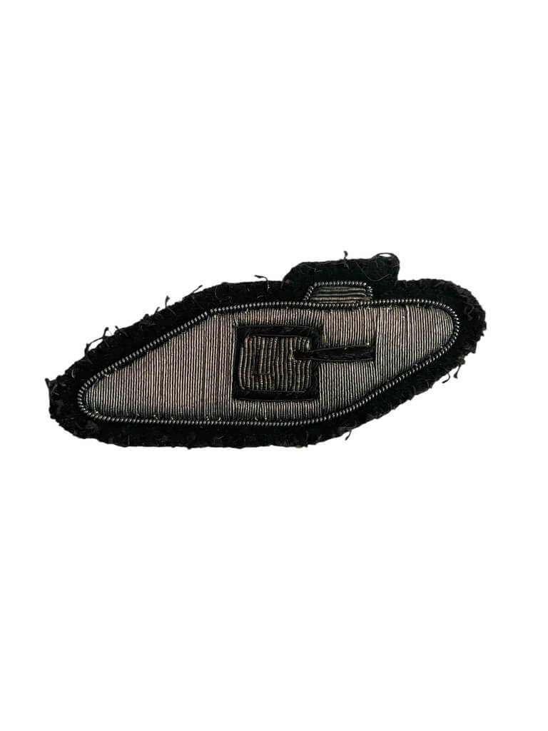 The WW2 British Armoured Corps Bullion Wire Tank Sleep Patch Badge is a military insignia from World War II. This authentic patch is made of bullion wire, a particular type of decorative wire used in embroidery. It represents the British Armoured Corps, showing their distinctive tank symbol. It serves as a historical item and a collector’s piece.