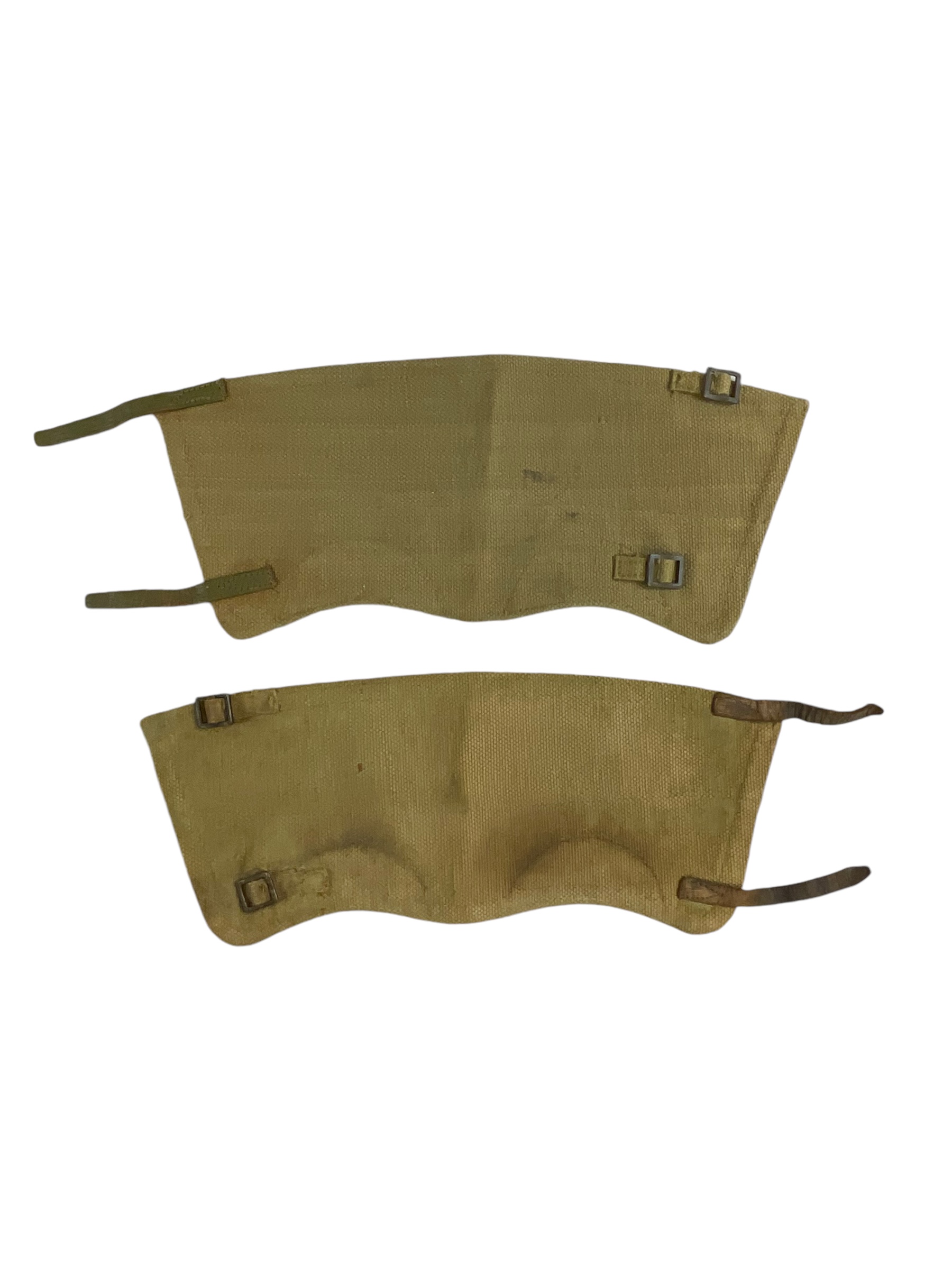 This item is a pair of authentic WW2 British Army Gators in size 3, dated from 1944. These gators are a remarkable piece of military history, made for the rugged conditions of the World War II era. They were designed to protect soldiers’ lower legs from harsh weather, rough terrain, and potential injuries. The gators are made of sturdy, durable material, crafted to endure the toughest conditions. Despite their age, they remain in good condition, a testament to their original quality and craftsmanship. They are marked with the year 1944, marking a crucial period in the war. This pair of gators is an excellent collector’s item for military enthusiasts, history buffs, or anyone interested in the WWII period. They offer a tangible connection to the past, providing a unique insight into the daily lives and challenges faced by British soldiers during the war.