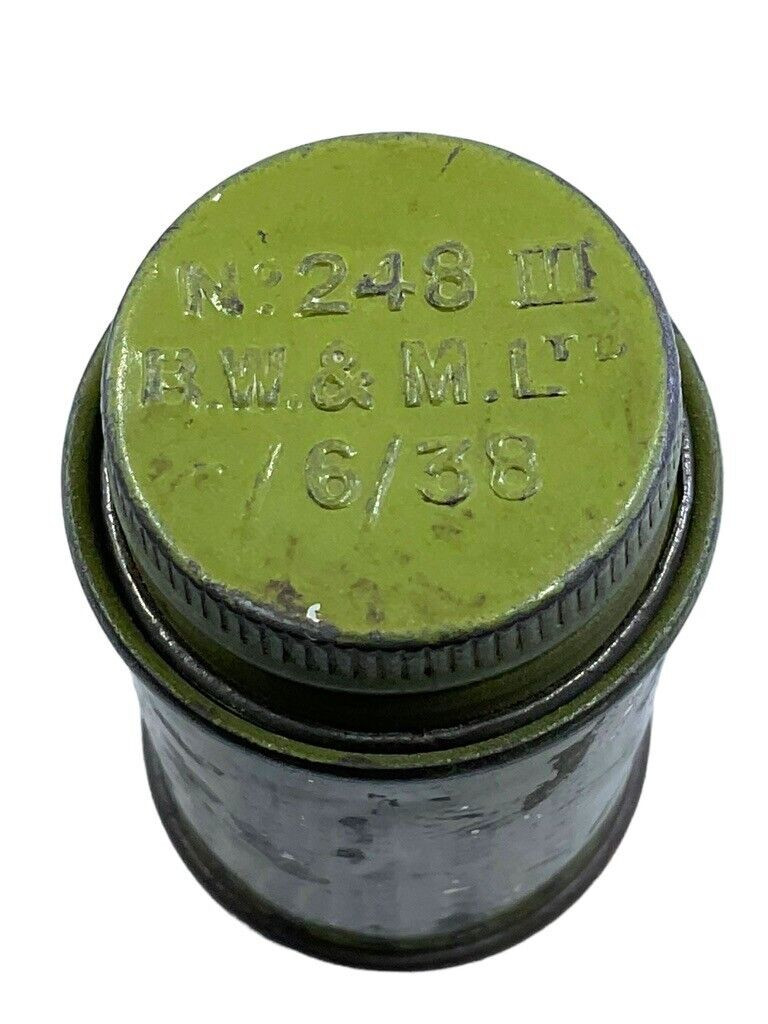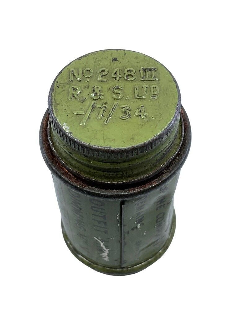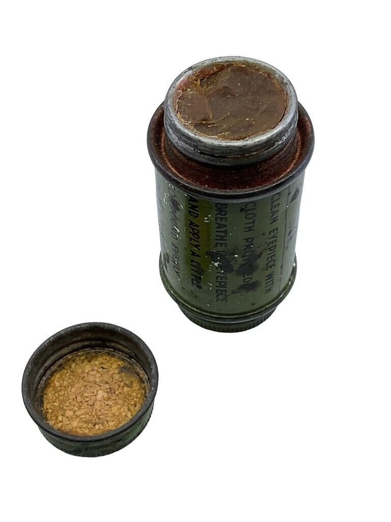 The ‘WW2 British Army Outfit Anti Dimming Mk5’ is a remarkable piece of military history designed to enhance the operational effectiveness of British soldiers during the Second World War. This specialized equipment was crafted to prevent the lenses of gas masks from fogging, a common and potentially life-threatening issue in various combat scenarios. The Mk5 variant represents the culmination of iterative improvements, offering superior performance and reliability. Housed in a compact and durable tin, the anti-dimming compound could be easily applied to gas mask lenses, ensuring clear vision in hazardous conditions. This piece serves not only as a functional tool of its time but also as a poignant reminder of the ingenuity and resilience of the British Army. Collectors and history enthusiasts alike will appreciate the craftsmanship and historical significance of the WW2 British Army Outfit Anti Dimming Mk5.
