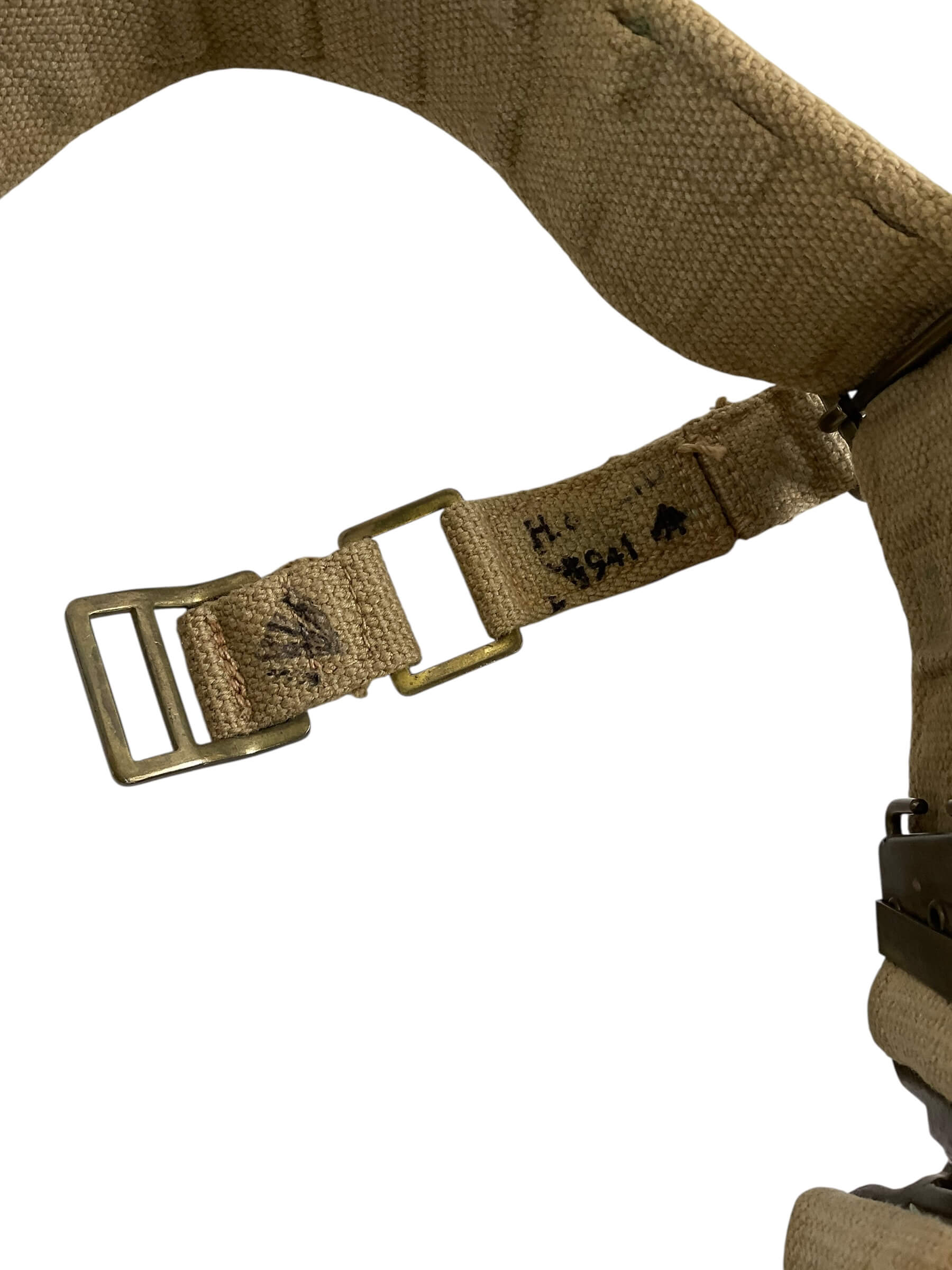 WW2 British Army Pattern 37 Web Belt Dated 1942 With Cheaters