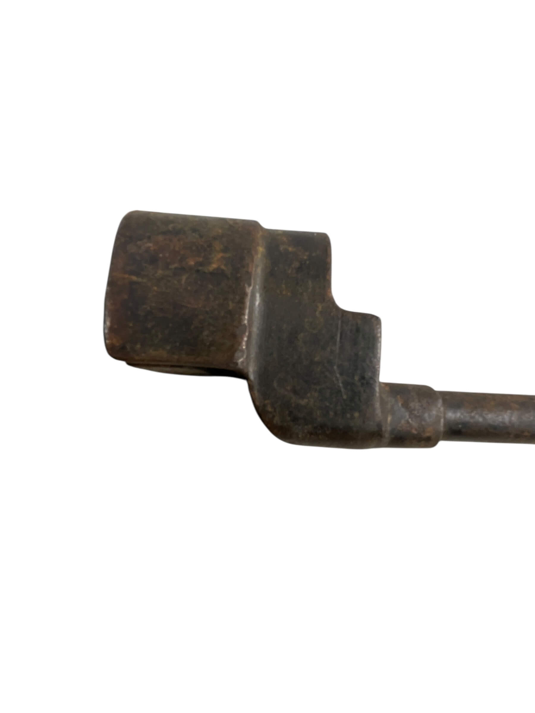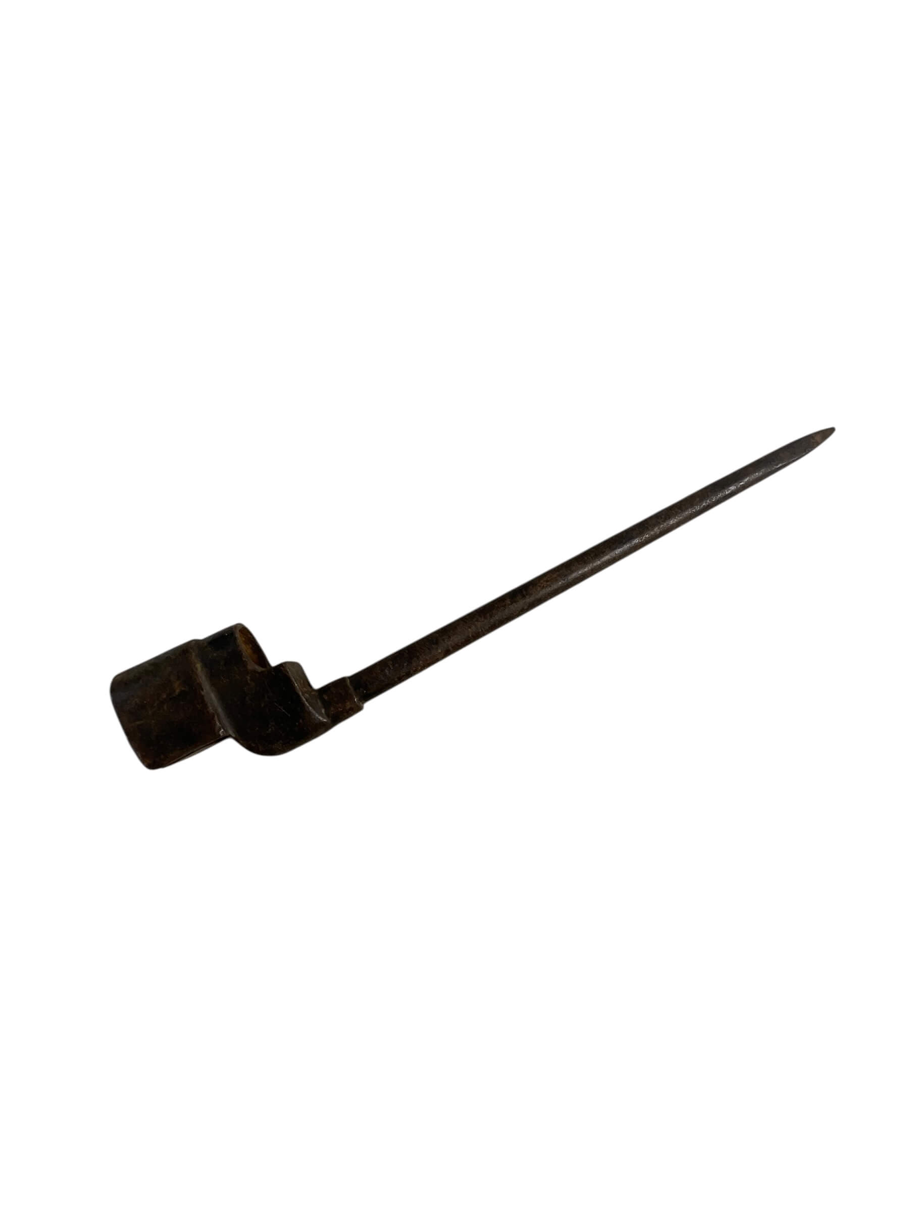 The WW2 British Army Spike Bayonet is a utilitarian edged weapon issued to British and Commonwealth forces during the Second World War. Designed primarily for the Lee-Enfield No. 4 rifle, it features a rod-style, cruciform spike blade, measuring approximately 8 inches in length. Unlike earlier sword or knife bayonets, the spike design emphasizes simplicity and ease of mass production, reflecting wartime manufacturing needs. The bayonet’s blade is made from forged steel, and the socket is designed to fit securely onto the rifle’s muzzle. Markings on the socket or blade often denote the manufacturer and date of production, with notable examples produced by companies such as Singer and Savage. The lack of a cutting edge distinguishes it from traditional bayonets, underscoring its function as a thrusting weapon. The WW2 British Army Spike Bayonet remains an important artifact from military history, illustrating changes in weapon design during the conflict.