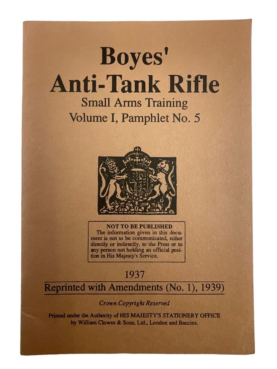 Title: ‘WW2 British Boyes Anti Tank Rifle Small Arms Training Copy V1 P5 Reference Book’ Description: This rare, softcover reference book is a reprinted edition of the ‘WW2 British Boyes Anti Tank Rifle Small Arms Training’ manual, originally issued in 1937 as Volume 1, Pamphlet No. 5, and updated with Amendments No. 1 in 1939. Spanning 18 pages, the manual provides detailed photographs, diagrams, and essential information about the operation and maintenance of the Boyes Anti Tank Rifle, a critical piece of British military equipment during World War II. This handbook is an invaluable resource for historians, military enthusiasts, and collectors, offering a glimpse into the training and techniques used by British armed forces to combat enemy armored vehicles. Despite its age and previous use, the booklet remains an important educational tool and a fascinating artifact of military history.