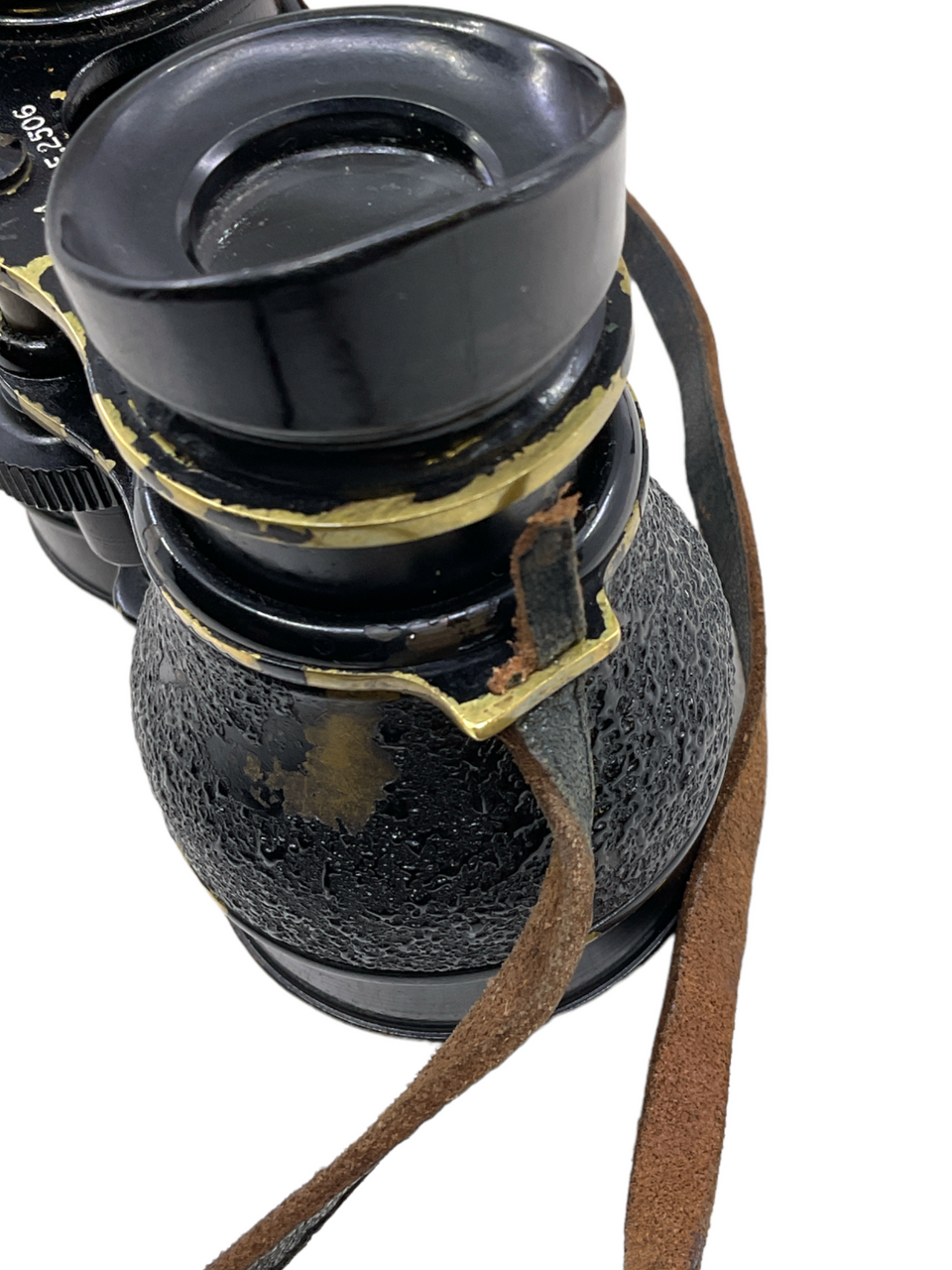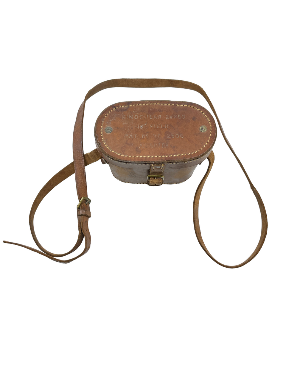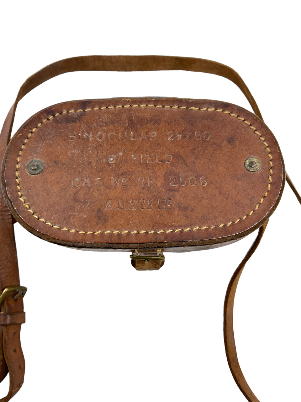 WW2 British Canadian 2 1/2 x 50 Binoculars With Leather Carry Case