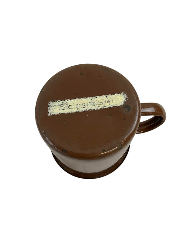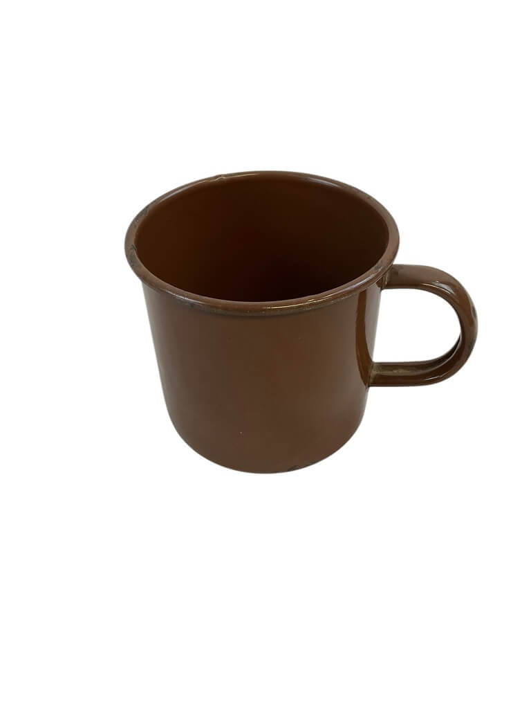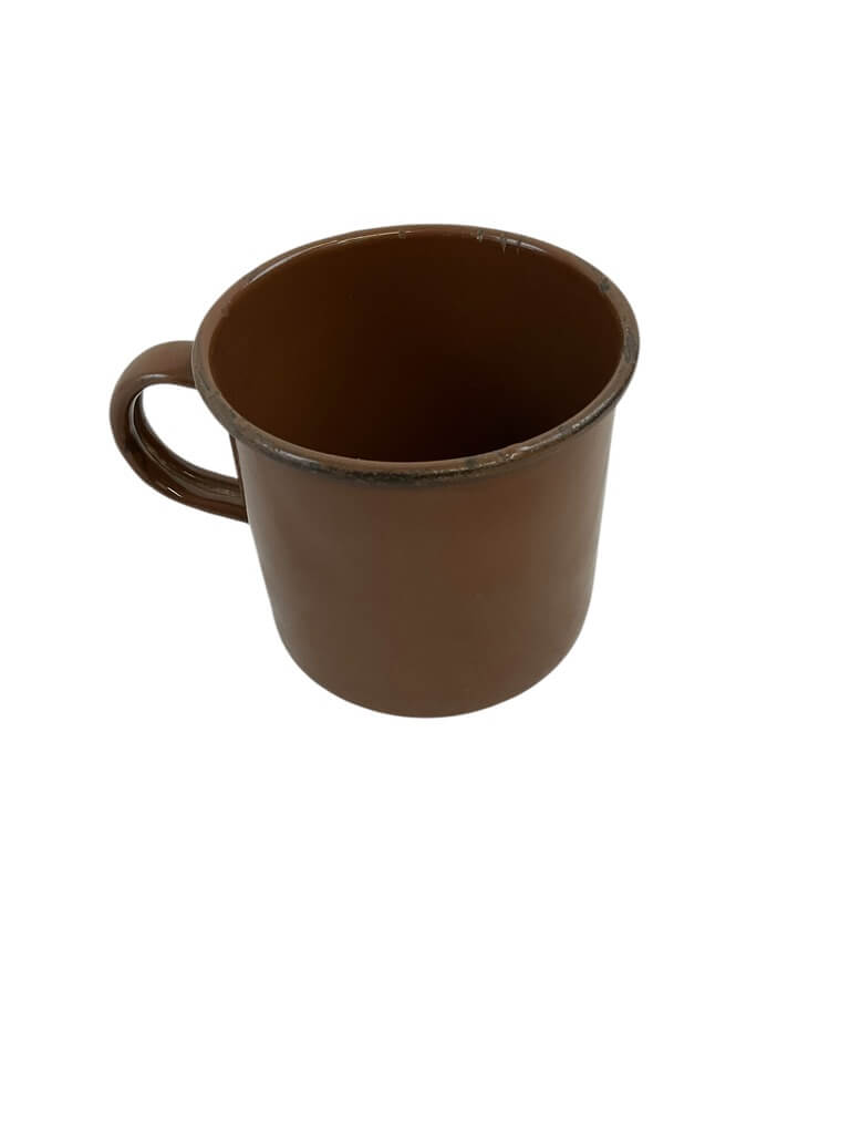 This WW2 British Canadian Enameled Cup is a historical piece of military memorabilia from the World War II era, specifically representing the British-Canadian alliance. The cup is made of durable metal and is coated with a layer of enamel in a greenish hue, which was a standard color for military equipment at that time. It showcases the robust and practical design of wartime manufactures, designed to withstand harsh field conditions. The cup may bear some signs of wear, as expected, which only add to its historical authenticity. This is not just a cup, but a tangible piece of history, a symbol of the cooperation and camaraderie between British and Canadian troops during one of the most pivotal periods in modern history. It is a must-have for any military history enthusiast or collector.