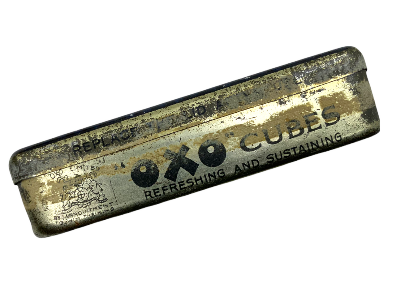The ‘WW2 British Canadian OXO Cubes Tin Home Front’ is a fascinating relic from the Second World War era, capturing a piece of everyday life on the home front in both Britain and Canada. This tin, originally used to store OXO bouillon cubes, reflects the resourcefulness and ingenuity of households during the war, when food rationing was a daily challenge. The sturdy tin, adorned with period-specific branding and artwork, offers a glimpse into the culinary practices of the time, where OXO cubes were a staple for adding flavor to otherwise simple and often austere meals. As a collectible, it holds historical significance, representing the unity and shared experiences of citizens in the face of adversity. This piece is not only a remarkable example of wartime memorabilia but also a tribute to the resilience and creativity of the home front communities who managed to turn scarcity into sustenance.