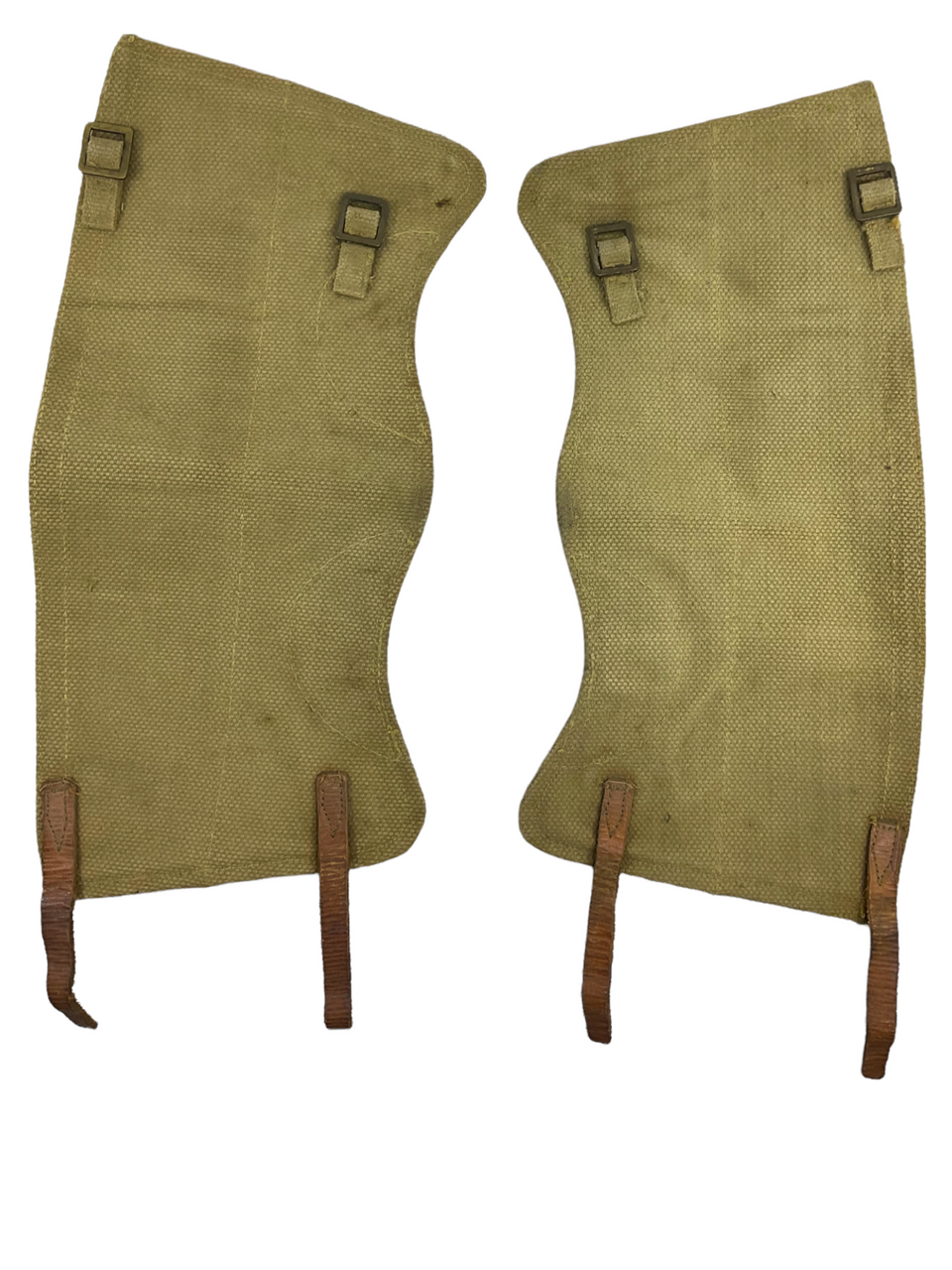 WW2 British Canadian Pair Of Canvas Gaiters With Leather Straps
