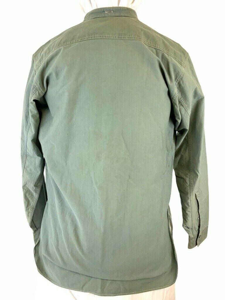 This authentic WW2 British Canadian RAF RCAF Officers Collarless Blue Shirt is a rare piece of military history. Worn by officers in the Royal Air Force (RAF) and Royal Canadian Air Force (RCAF) during the Second World War, this shirt embodies the era’s distinctive uniform style. Expertly crafted from durable, high-quality fabric, it features a striking collarless design, characteristic of the period, offering both functionality and comfort. The shirt’s deep blue hue signifies its air force origins, and it includes meticulously sewn buttons and reinforced stitching for robustness. Ideal for collectors, historians, or re-enactors, this shirt not only presents an authentic glimpse into wartime apparel but also serves as a poignant reminder of the bravery and dedication of the officers who wore it. Own a piece of history with this remarkable WW2 British Canadian RAF RCAF Officers Collarless Blue Shirt.
