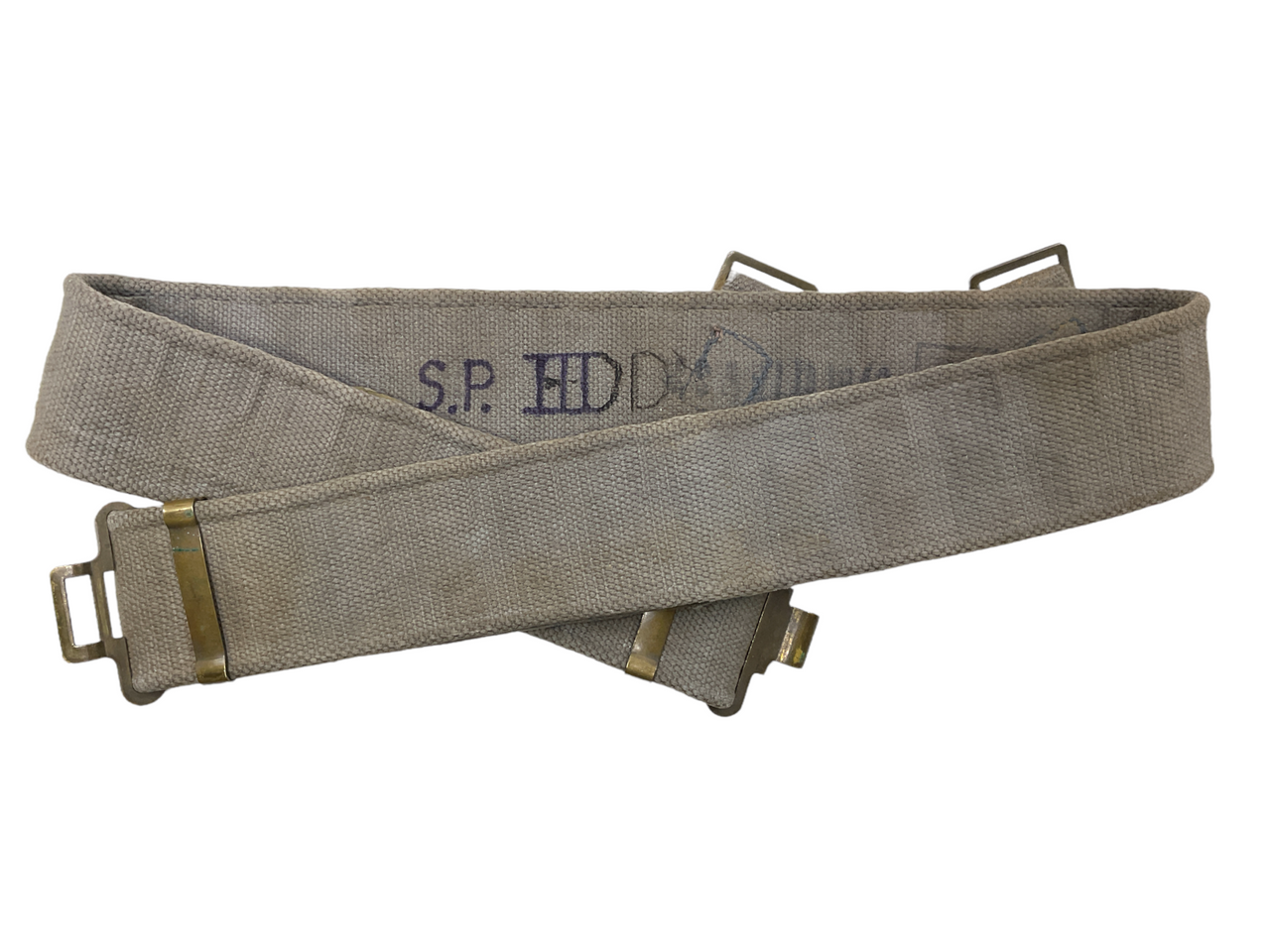 This authentic WW2 British Canadian RAF RCAF P37 Web Belt, dated 1942, is a genuine piece of military history. Crafted during the height of World War II, the P37 web belt was a crucial component of the British and Canadian armed forces’ equipment. Made from durable webbed cotton material, this belt ensured reliability and functionality for soldiers in the Royal Air Force (RAF) and the Royal Canadian Air Force (RCAF). The 1942 date stamp signifies its historical significance and authenticity. This web belt features all the original design elements characteristic of the Pattern 1937 (P37) webbing, including sturdy brass fittings and an adjustable closure system. A great addition for collectors of military memorabilia, historians, or enthusiasts of wartime artifacts, this piece offers a tangible connection to the brave men and women who served during WW2. Its preserved condition reflects the craftsmanship and durability that were essential for wartime gear.