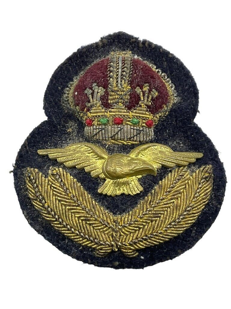 WW2 British Canadian RCAF RAF Officers Bullion Wire Cap Badge Padded