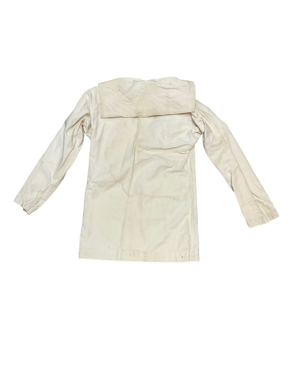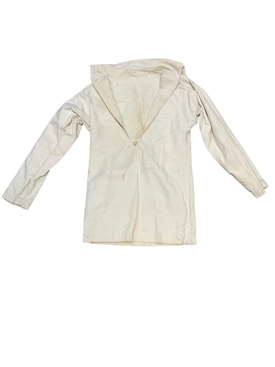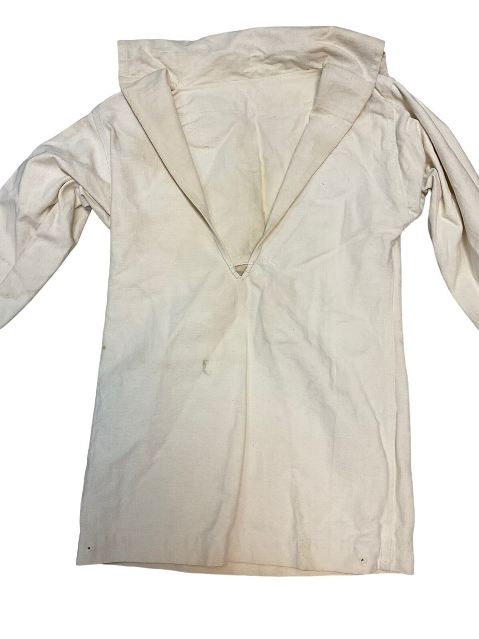 WW2 British Canadian RCN RN Navy White Shirt Jumper Named This vintage World War II British Canadian Royal Canadian Navy (RCN) and Royal Navy (RN) white shirt jumper is a significant historical collectible. Featuring authentic military attire, this named piece embodies the maritime legacy of the allied naval forces during the Second World War. Crafted from durable, period-appropriate fabric, the shirt jumper showcases traditional naval design elements, including a classic white color and meticulous stitching. Its “named” status indicates it was once worn by a specific sailor, adding a personal and historical touch to the garment. Perfect for collectors, history enthusiasts, and re-enactors, this uniform piece not only represents the bravery and resilience of naval personnel but also serves as a poignant reminder of the maritime contributions toward the Allied victory. Preserve a piece of history with this extraordinary WW2 British Canadian RCN RN Navy white shirt jumper.