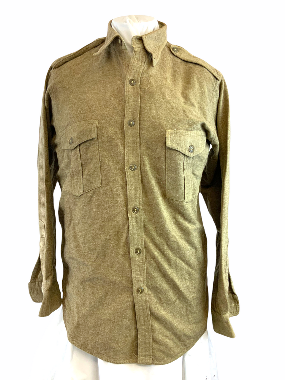 WW2 British Canadian Wool Button Front Collared Shirt 14.5 Collar