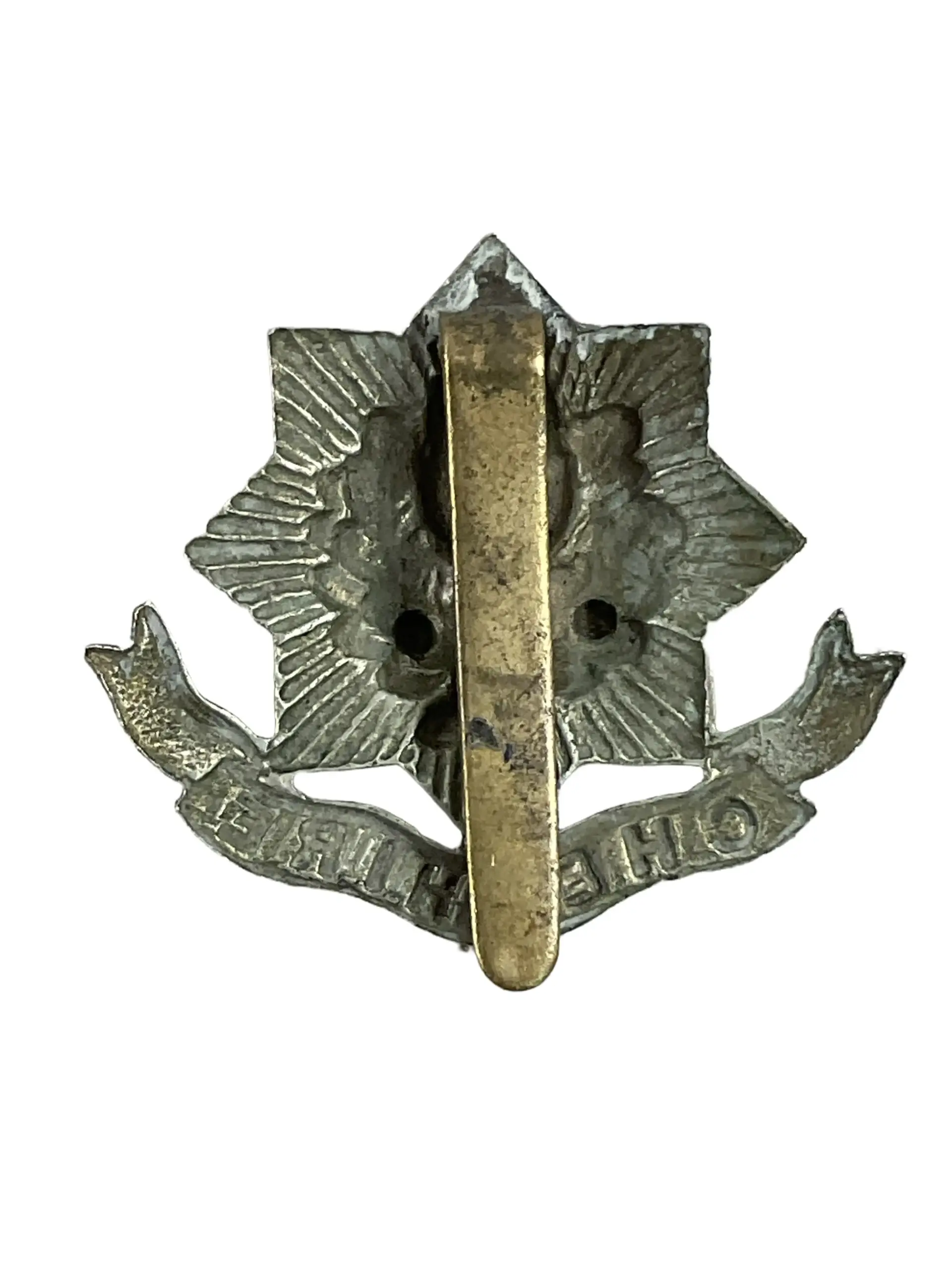 The WW2 British Cheshire Regiment Cap Badge is an original military insignia issued to members of the Cheshire Regiment during the Second World War. The badge features the regiment’s distinctive design, typically comprising an acorn and oak leaves motif, emblematic of the regiment’s heritage and identity. Constructed from brass or white metal, these cap badges were commonly worn on the service dress cap by both non-commissioned officers and enlisted personnel. The reverse usually includes either lugs or a slider for attachment to the headdress. The Cheshire Regiment, established in 1689, played significant roles in various theaters throughout World War II, including campaigns in Europe and the Far East. Cap badges such as this are representative of British Army uniform insignia from the era and are of interest to collectors and historians for their connection to military history and regimental tradition. This item provides an example of period-correct equipment used by soldiers of the Cheshire Regiment during WW2.