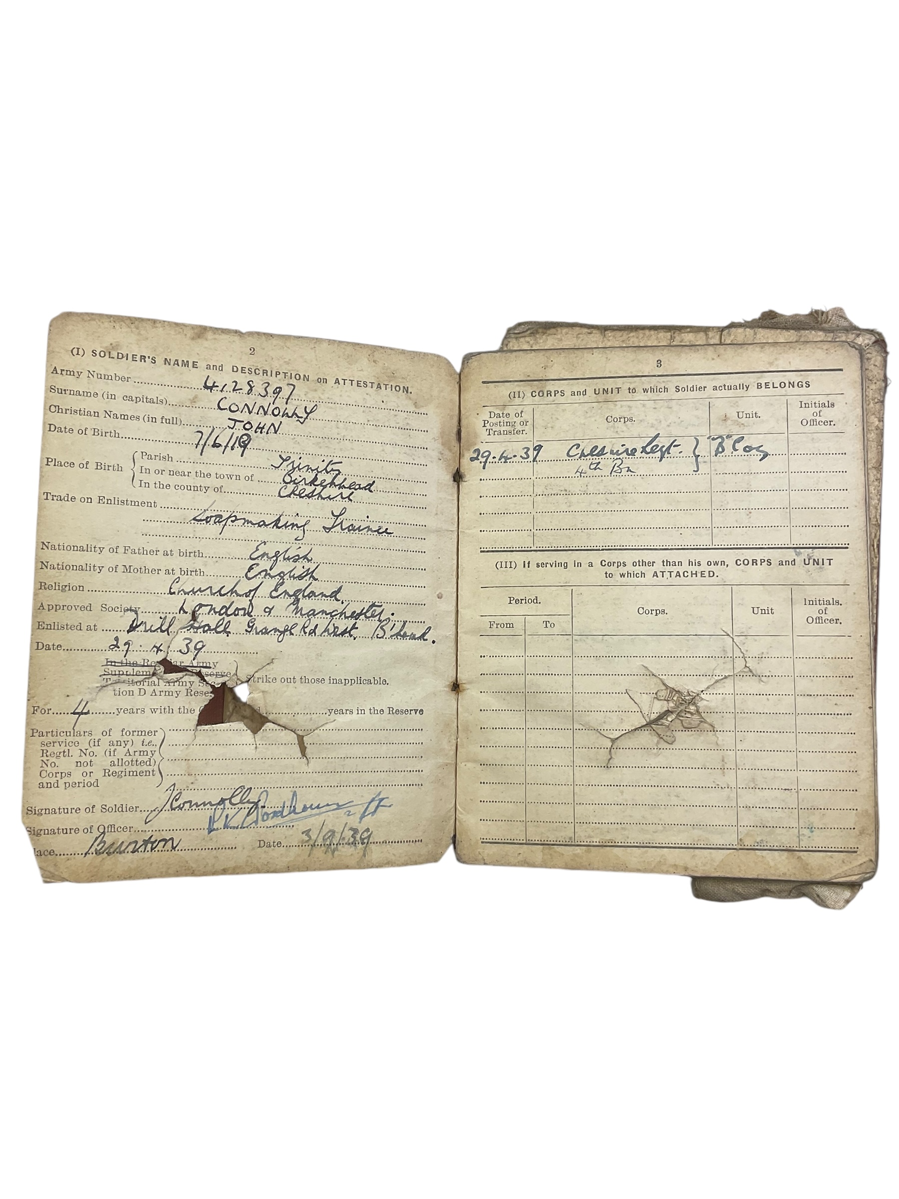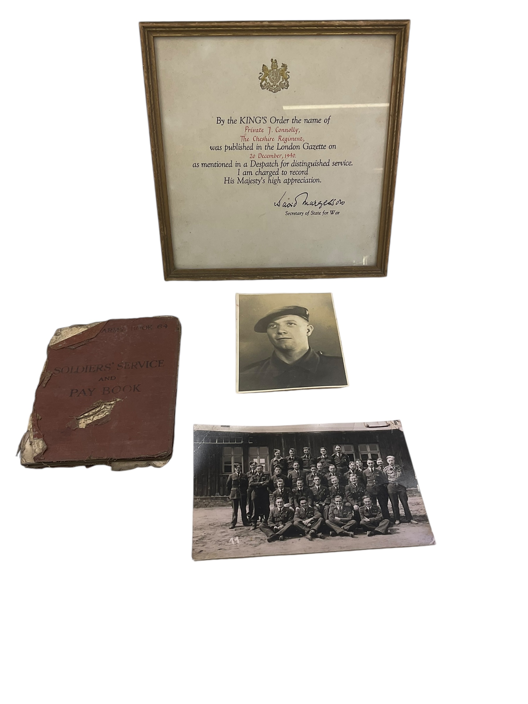 WW2 British Cheshire Regiment Soldiers Service Pay Book Photos and MID Certificate Dunkirk POW