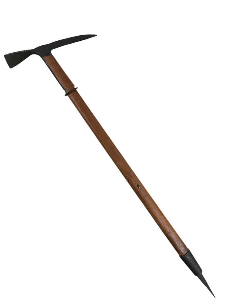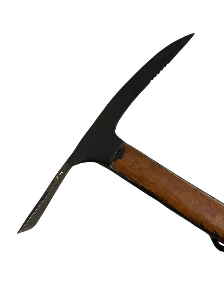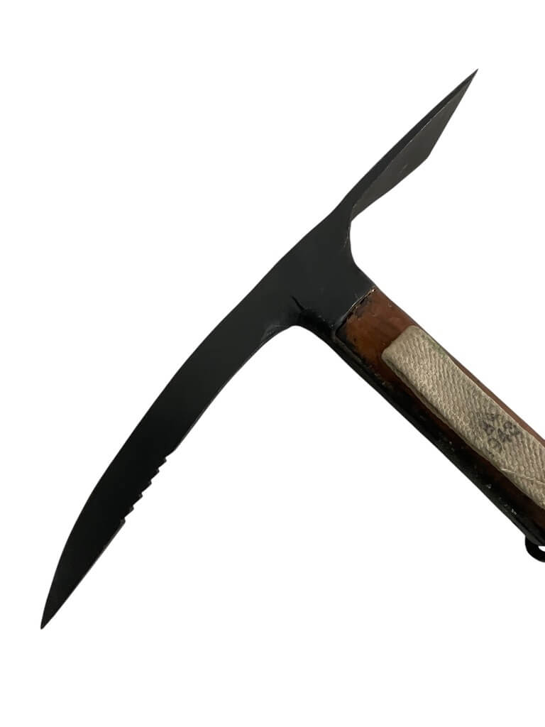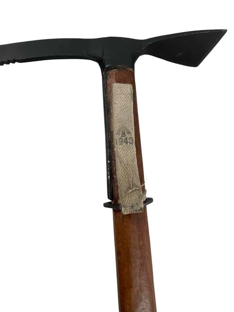 The WW2 British Commando Mountain Troops Axe Broad Arrowed Dated 1944 is a historical artifact from World War II. This robust tool was used by British mountain commandos for various tasks during their missions. It’s marked with a broad arrow, signifying British government property, and is dated 1944, indicating its era of use.
