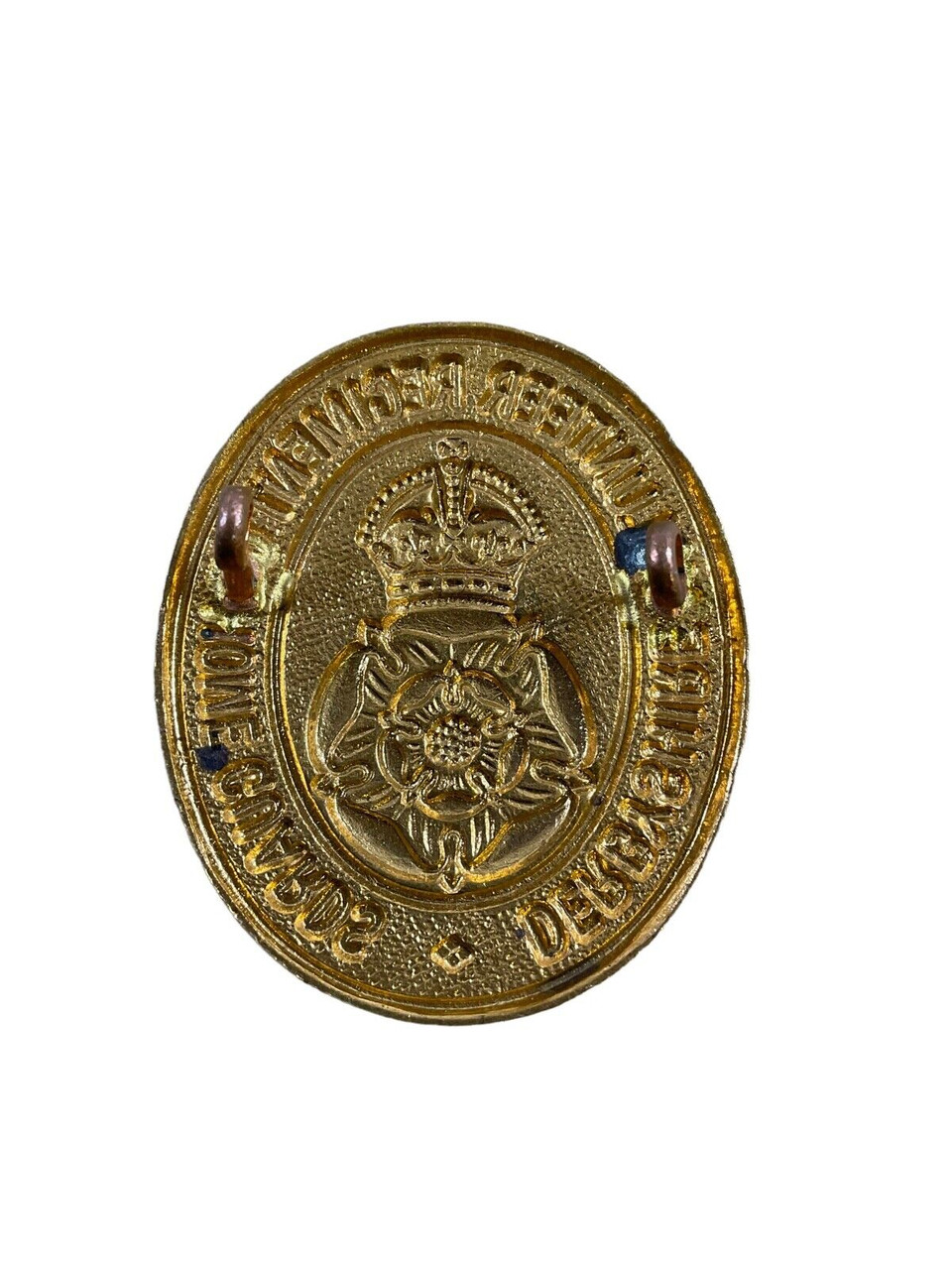 The WW2 British Derbyshire Volunteer Regiment of Home Guards cap badge insignia is a remarkable piece of military history, symbolizing the dedication and bravery of local volunteers during World War II. Crafted with intricate detail, the badge showcases the heraldic emblem of Derbyshire, encapsulated within a traditional design that reflects the steadfast spirit of the Home Guard. This insignia was proudly worn on the caps of the Derbyshire volunteers who played a crucial role in the defense of Britain, standing ready to protect their homeland from invasion. Collectors and historians alike value this cap badge for its historical significance and as a tribute to the civilian soldiers who exemplified courage and community resilience during a time of national peril. The badge, often adorned with the unit’s name and symbolic motifs, serves as a poignant reminder of the ordinary men and women who became extraordinary protectors in one of history’s most challenging periods.