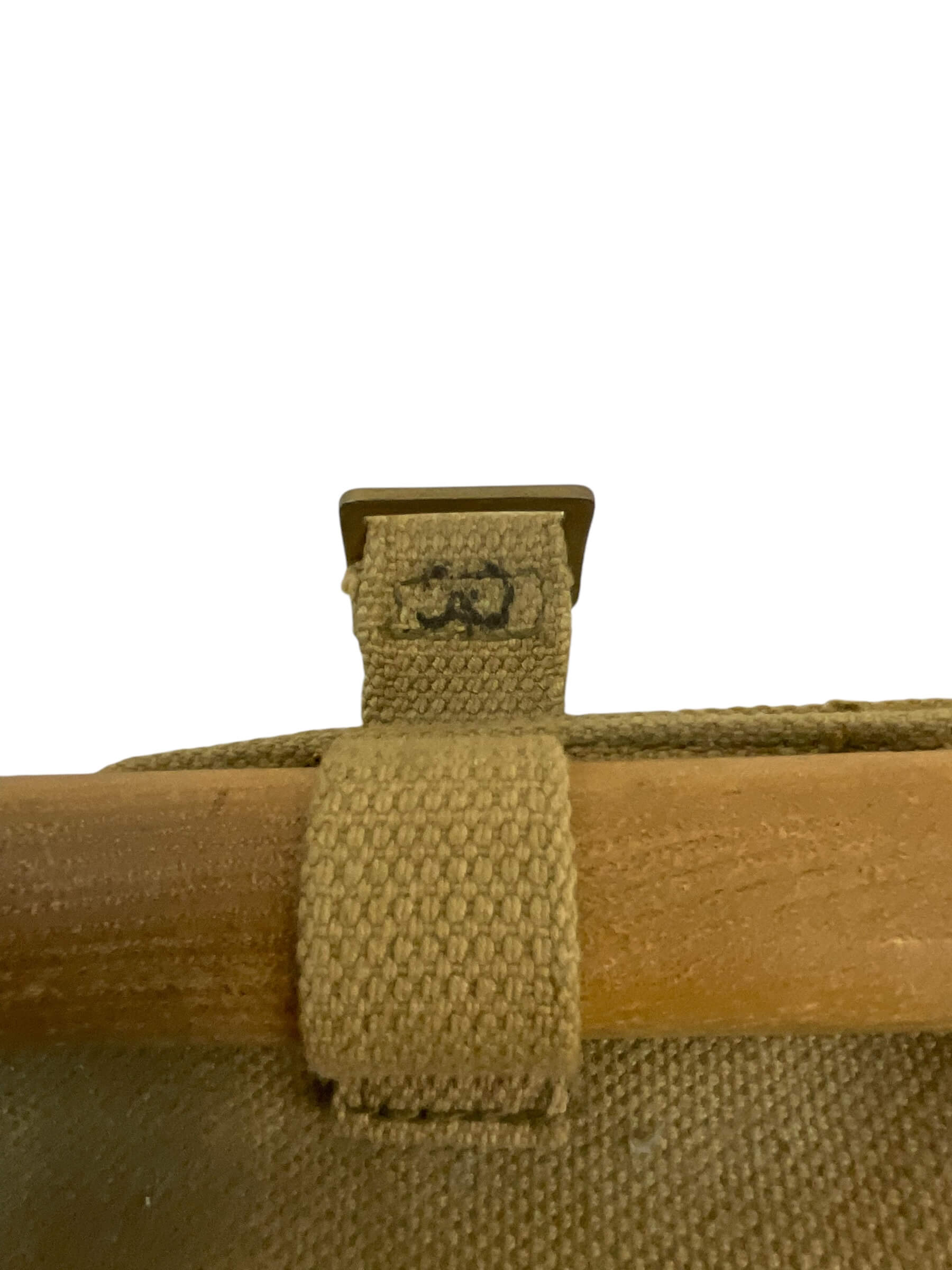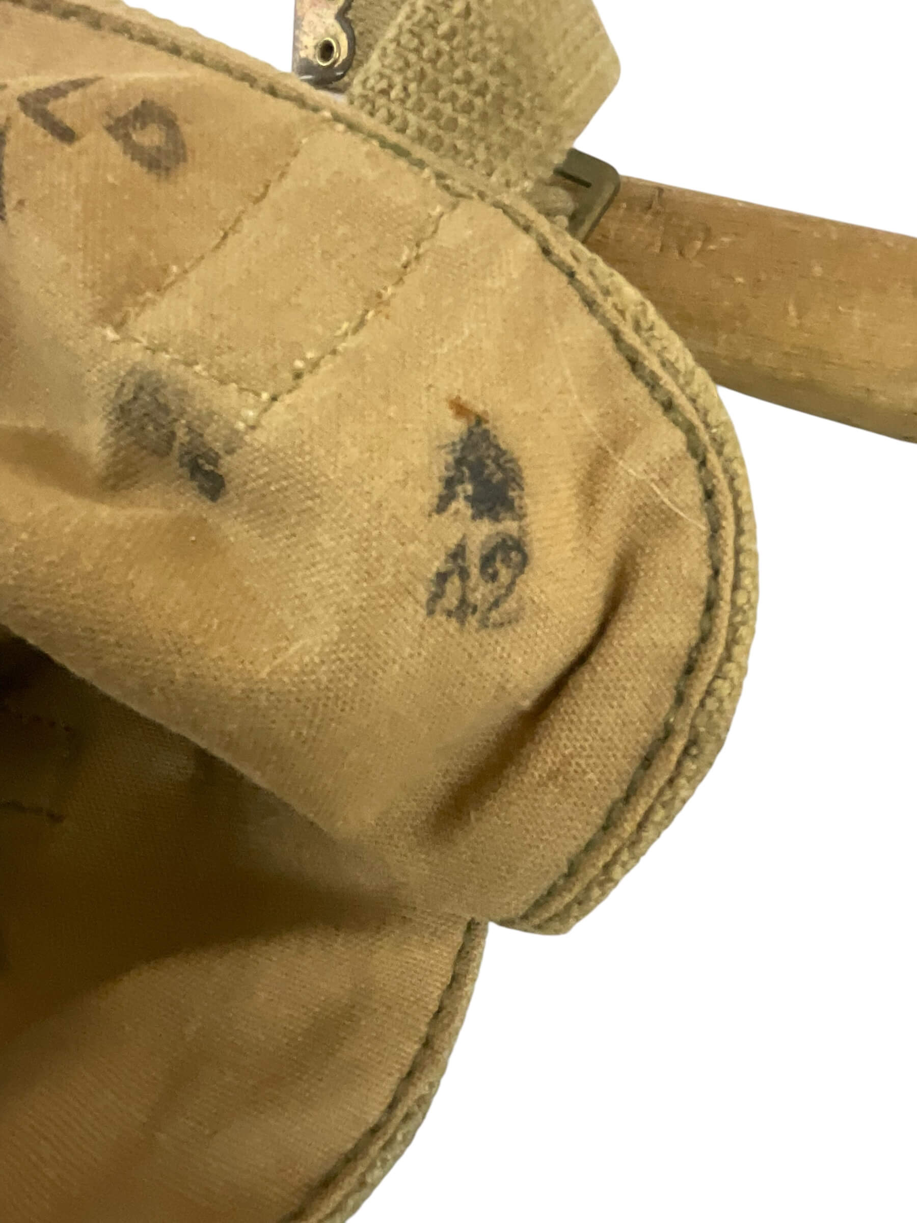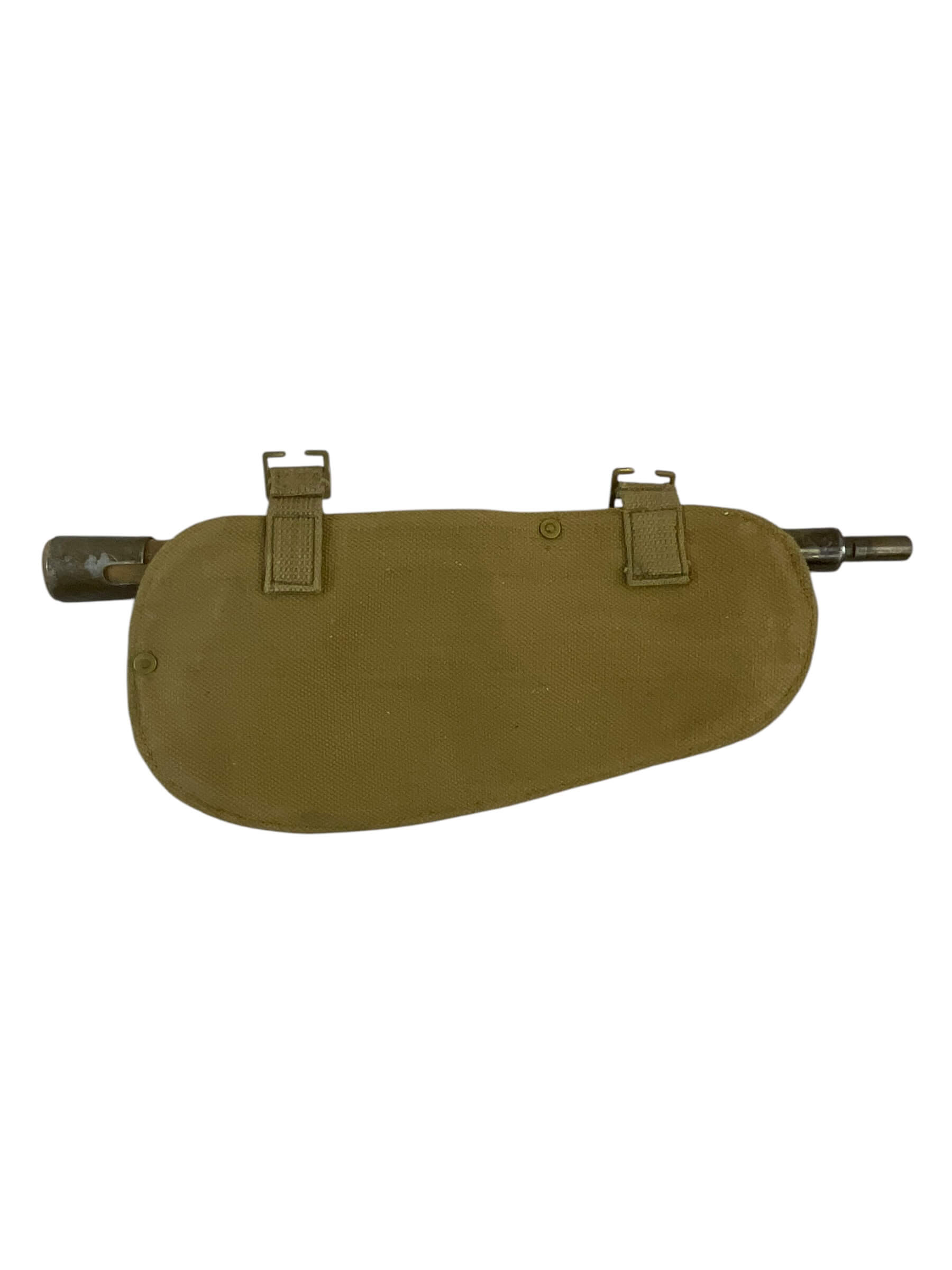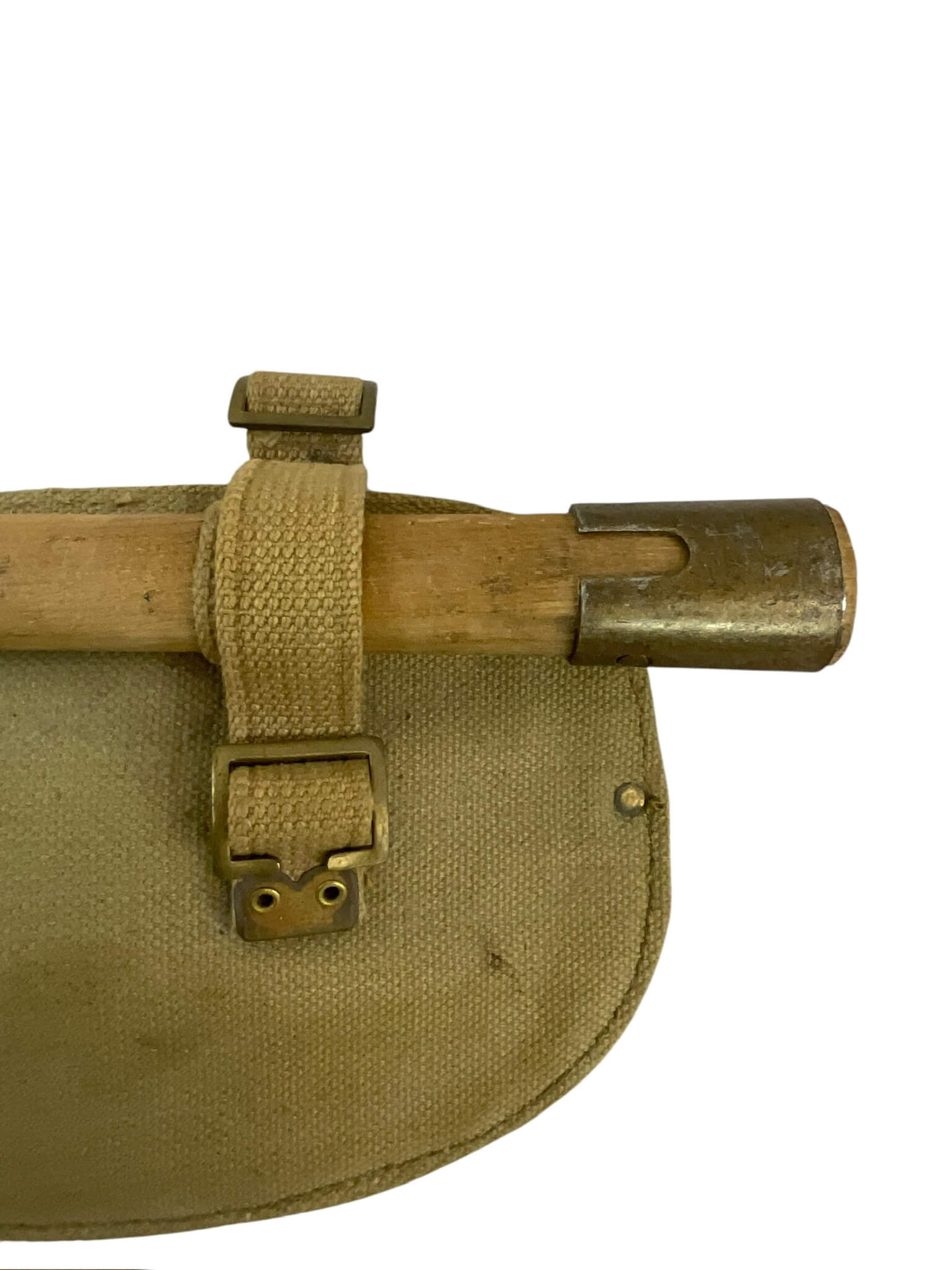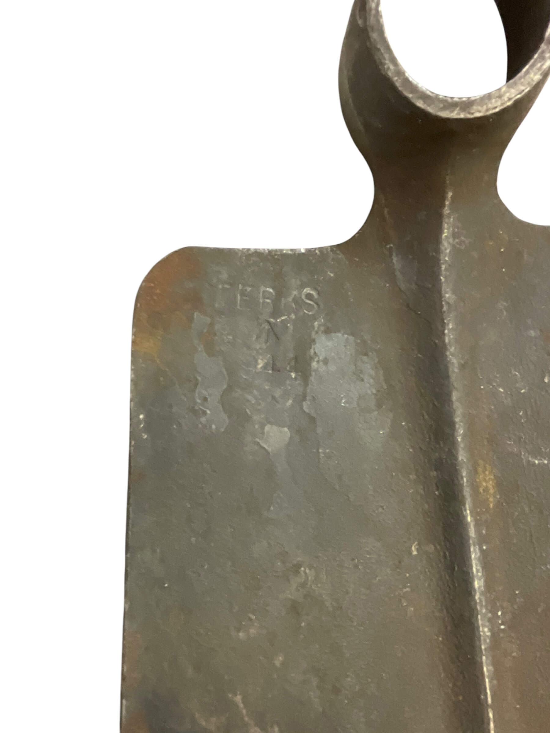 This is an authentic WW2 British E-Tool Shovel from 1944, a rare find for history enthusiasts and collectors alike. The E-Tool, also known as an entrenching tool, was an essential piece of equipment for soldiers during the Second World War, used for a variety of tasks from digging foxholes to close-quarters combat. This particular item is complete, boasting an original wooden handle and metal shovel head. Despite its age, the tool is in remarkable condition, showcasing the robust quality of British wartime manufacturing. The year 1944 is clearly stamped on the metal, providing a poignant reminder of a pivotal time in world history. This piece is more than just a shovel; it’s a tangible link to the past and a testament to the resilience of those who served.