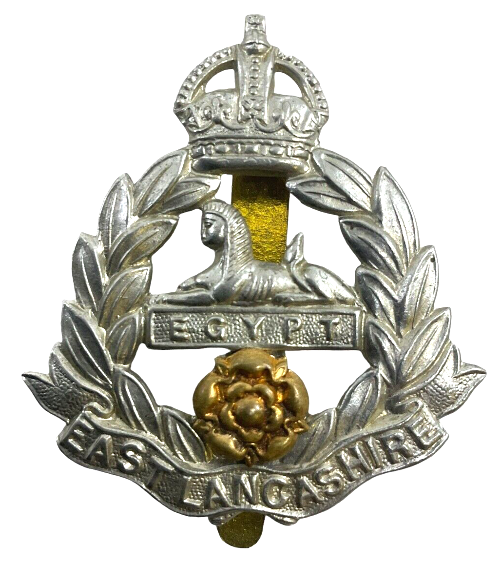 The WW2 British East Lancashire Regiment Cap Badge is a historically significant military artifact from the Second World War. This intricately designed badge bears the emblem of the East Lancashire Regiment, a distinguished unit of the British Army known for their valor and contributions during the conflict. Crafted from metal, the cap badge features the regiment’s insignia, traditionally a sphinx above Egypt, framed by laurels, and often accompanied by the regiment’s name or motto, symbolizing their honored legacy. Such badges were proudly worn by soldiers on their caps as a mark of identity and pride. Collectors and history enthusiasts highly value these badges for their craftsmanship and the rich history they represent. This particular badge serves as a poignant reminder of the bravery and dedication of the East Lancashire Regiment during one of the most challenging periods in modern history.