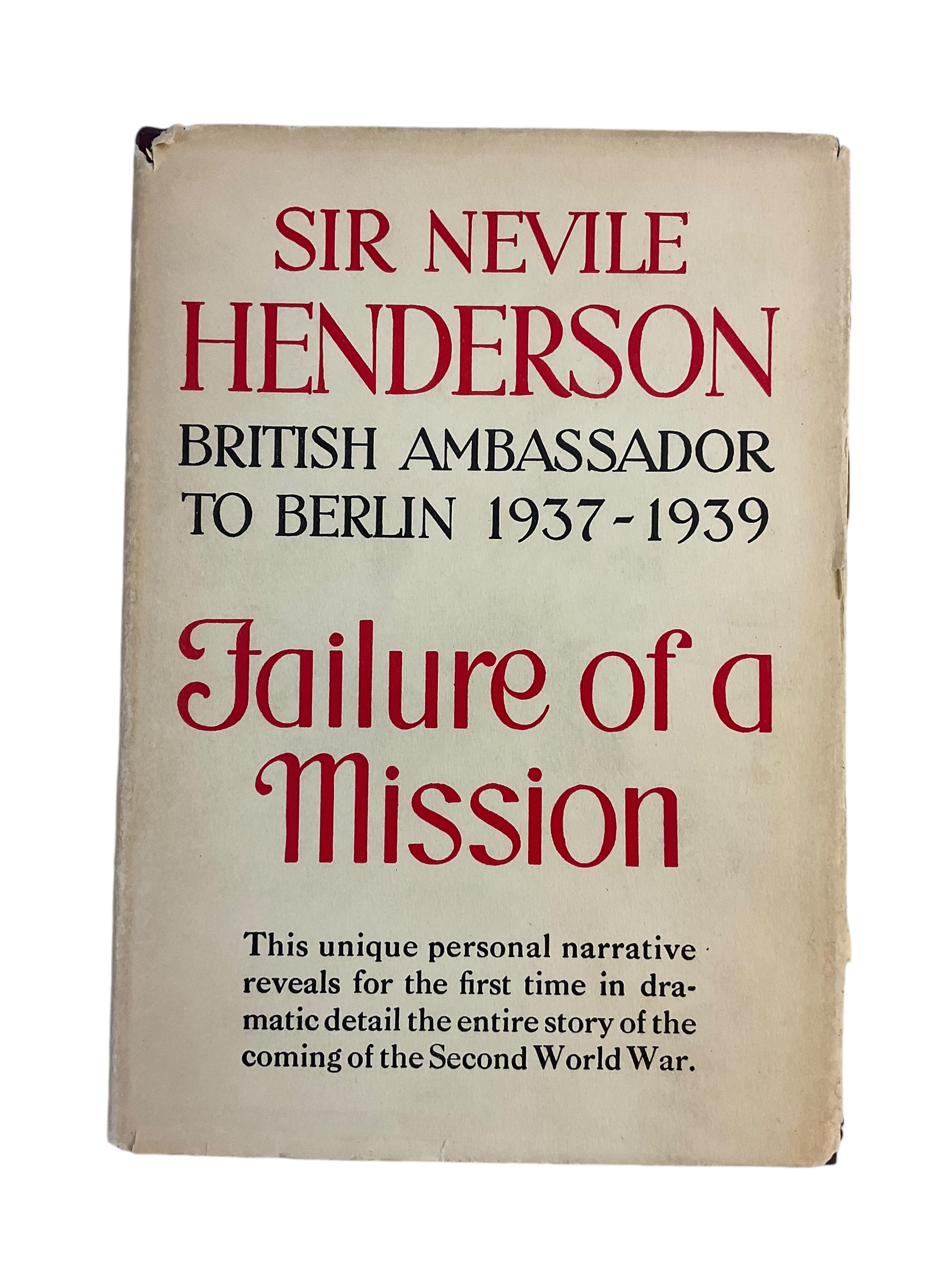 This is a used hardcover WW2 British Failure of a Mission Sir Nevile Henderson Ambassador Reference Book. Total of 334 pages with lots of information.