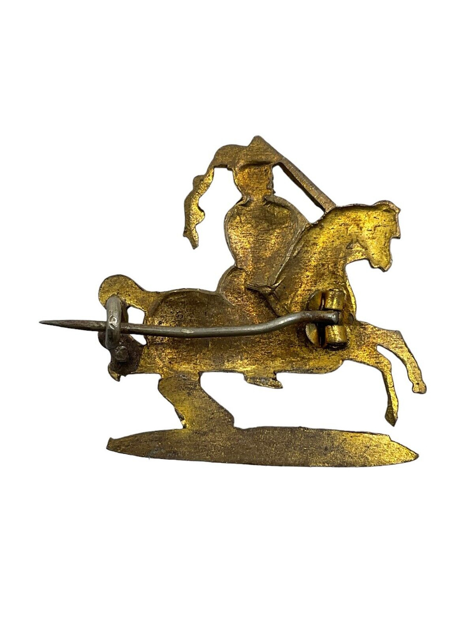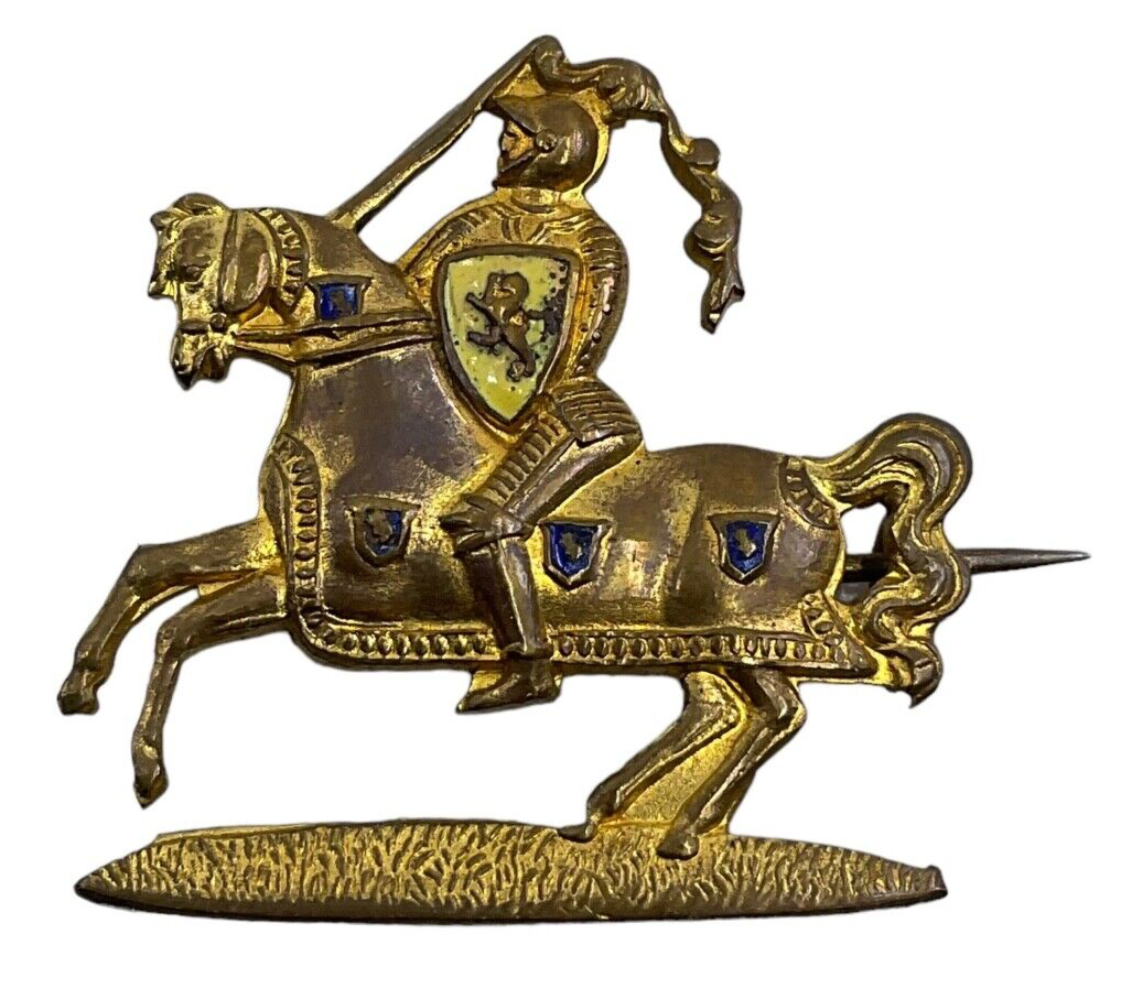 This piece is a World War II-era collar insignia from the Fife and Forfar Yeomanry, a distinguished regiment of the British Army. The insignia, intended for a single collar, reflects the storied history and proud heritage of the regiment, which served with distinction during the war. Crafted with meticulous attention to detail, it features emblematic symbols that signify the regiment’s ethos and legacy. The Fife and Forfar Yeomanry played crucial roles in various campaigns, and this insignia would have adorned the uniform of one of its gallant members. Collectors and history enthusiasts will appreciate the craftsmanship and historical significance of this item, a tangible connection to the bravery and commitment of the soldiers who wore it. Whether displayed as part of a collection or as a standalone piece, this collar insignia represents a poignant piece of military history.