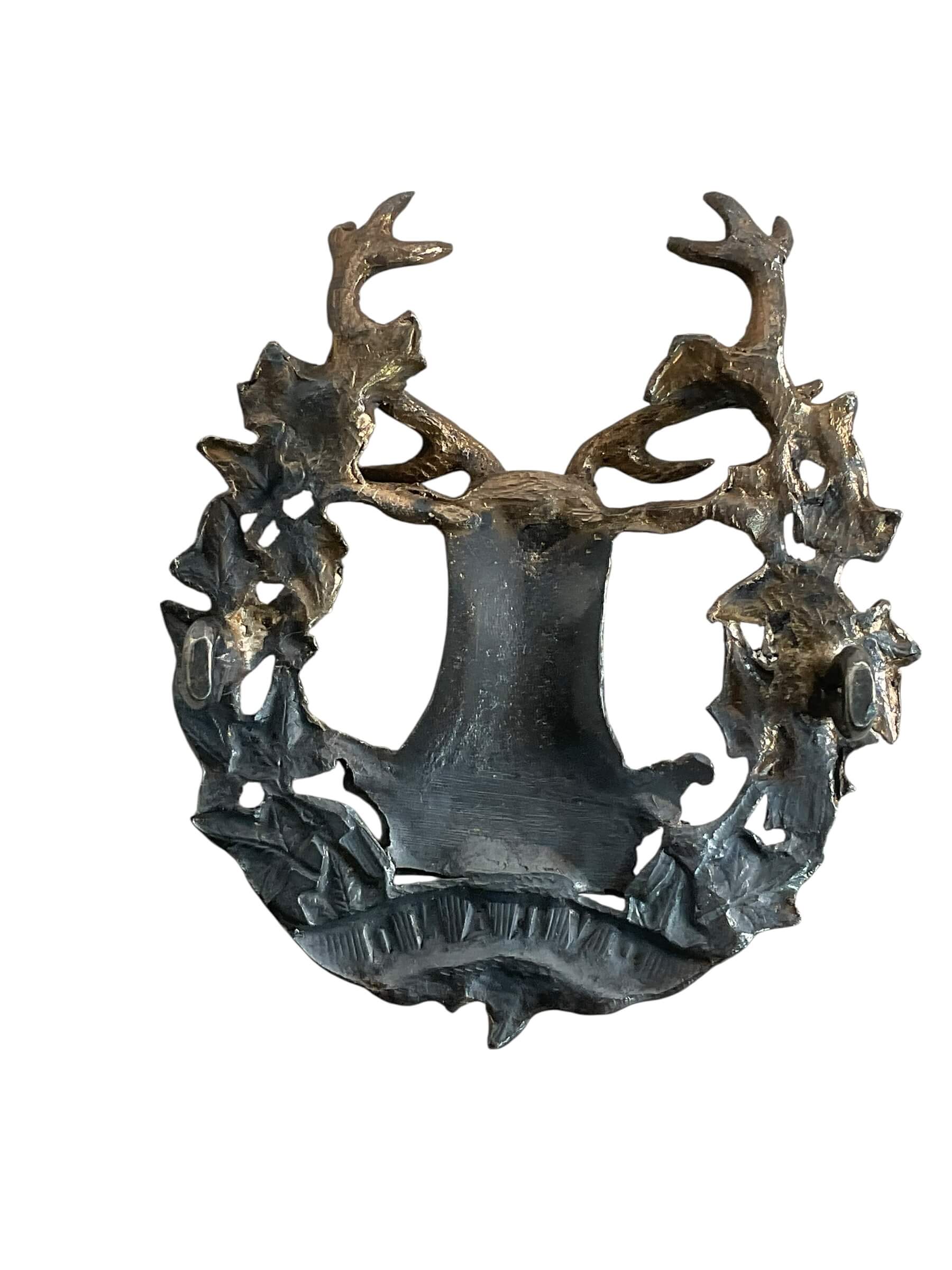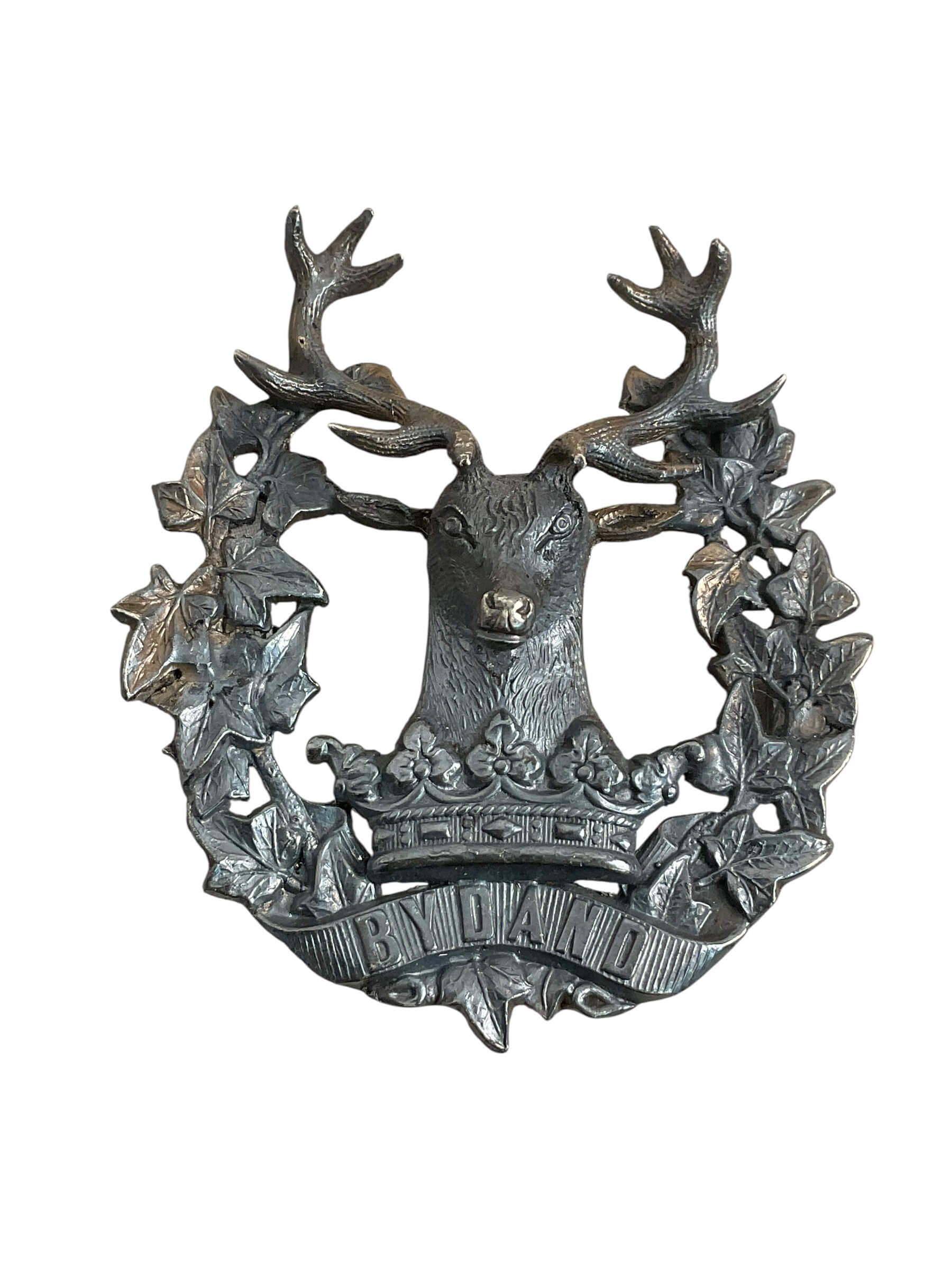 The WW2 British Gordon Highlanders Cap Badge Silver is an emblematic insignia indicative of the prominent Gordon Highlander’s unit of the British Army during World War II. This particular cap badge, made out of silver, is meticulously crafted preserving an intricate detailing distinctive of its historical and martial symbolism. It prominently features “BYDAND”, the motto of the Gordon Highlanders, enclosed within a wreath of ivy leaves, topped with a Royal Stag’s head. Traditionally, it is worn on the Tam O’Shanter, a type of traditional Scottish bonnet, by the enlisted. The emblem significantly marks the unwavering courage and valiance of the Gordon Highlanders. This item is typically purchased by collectors, historians, war veterans, or their relatives. While it represents a small slice of British military history, it also serves as an enduring testament to the Gordon Highlanders’ contribution during the global conflict.