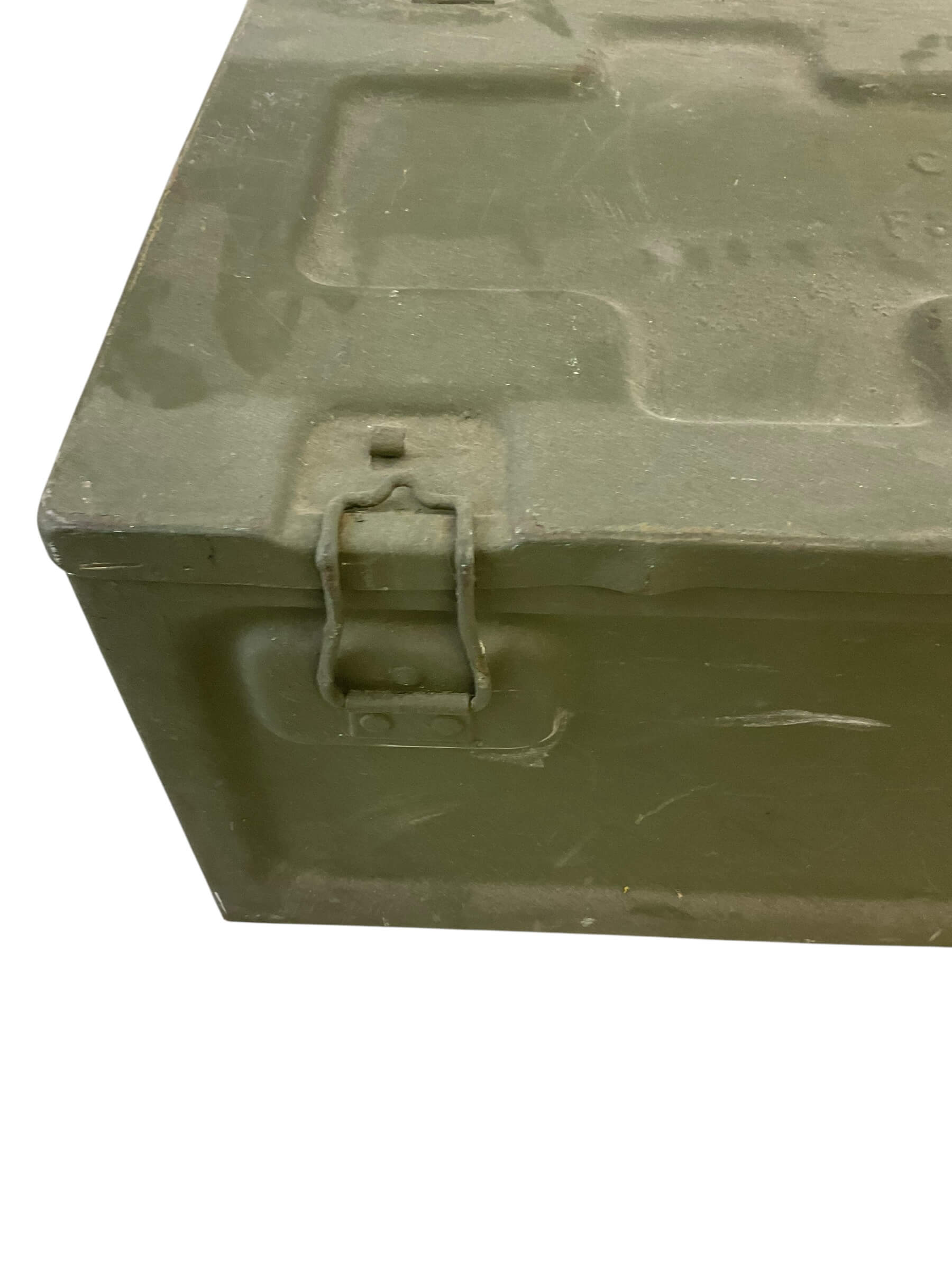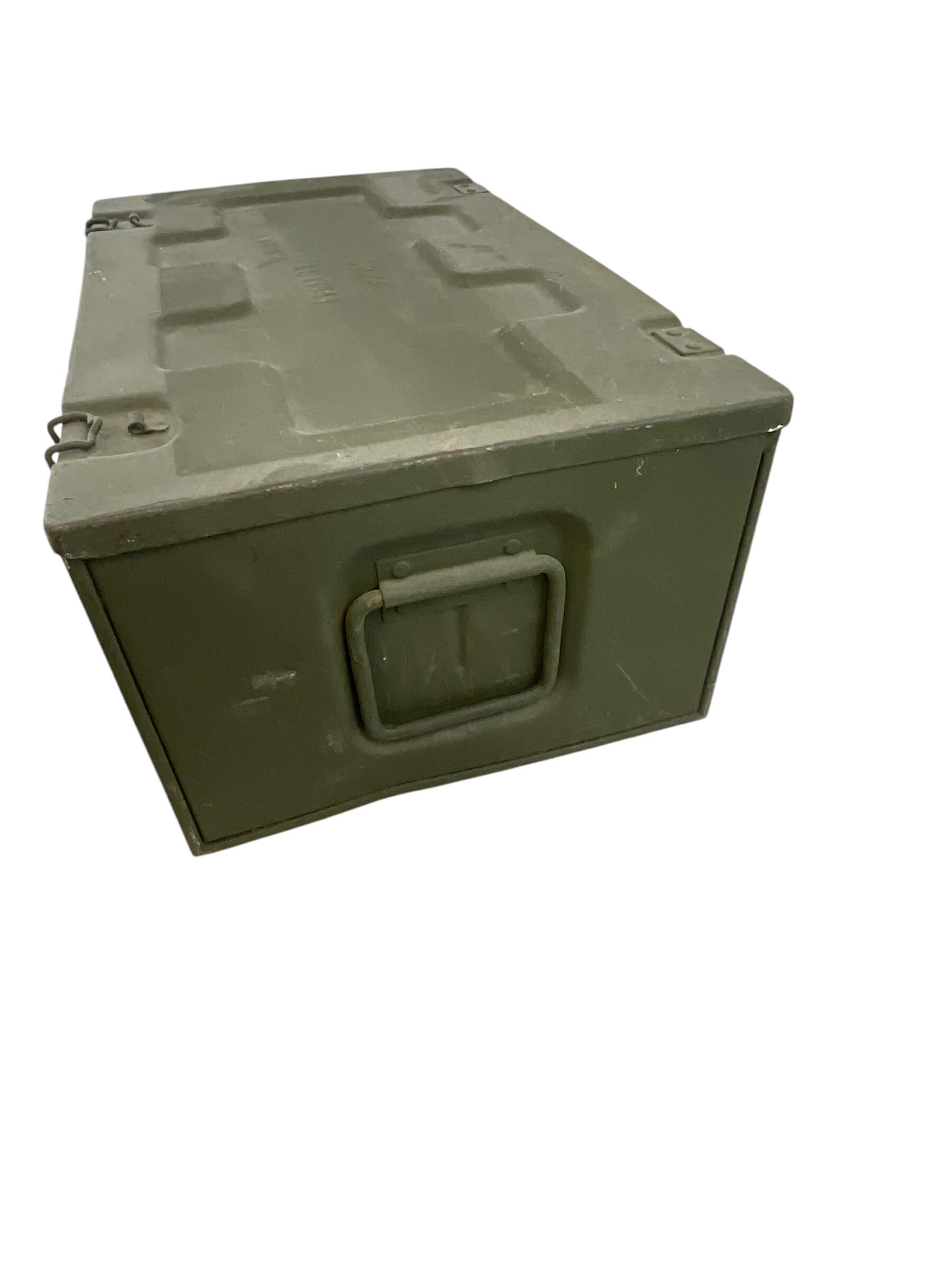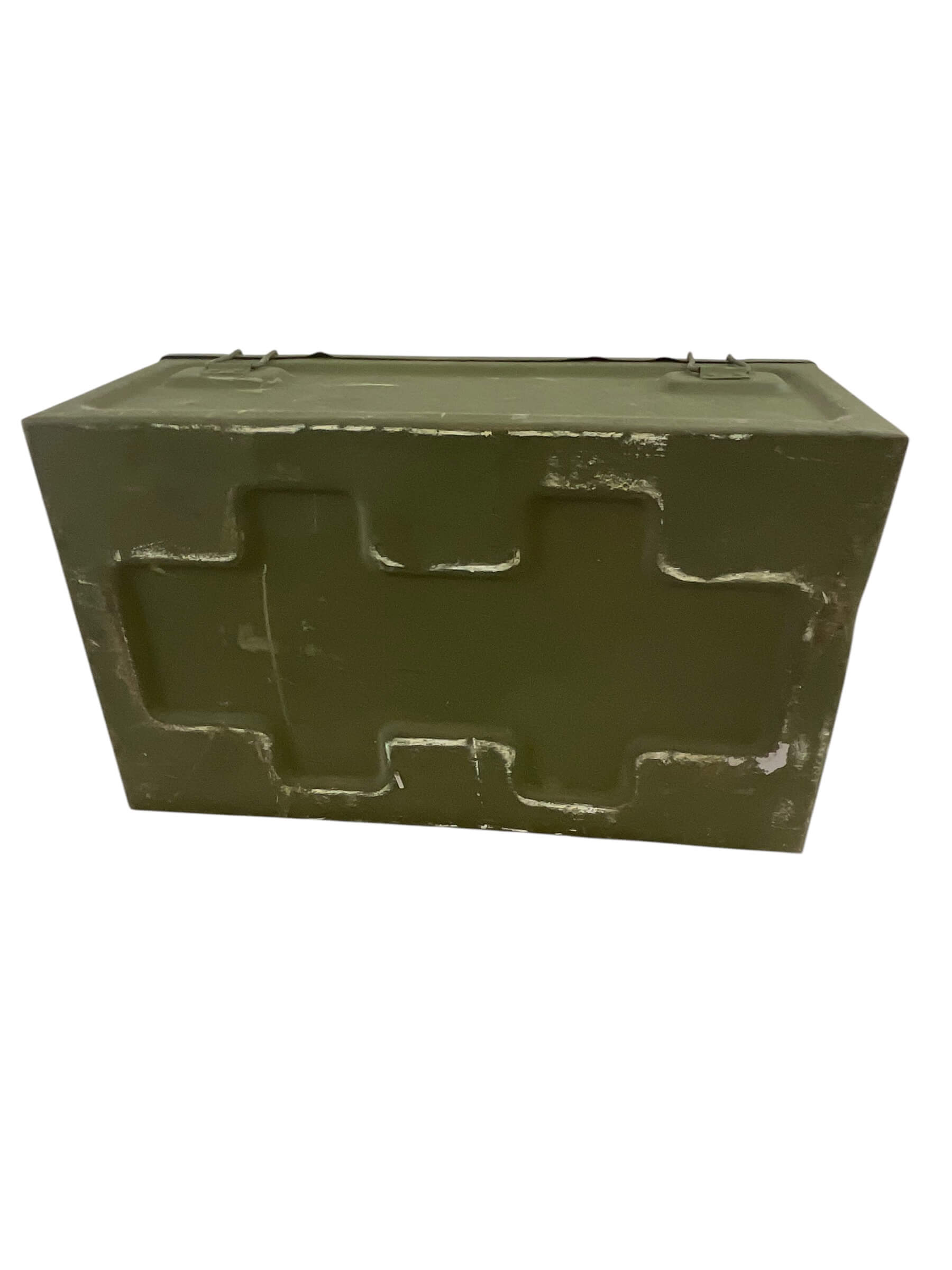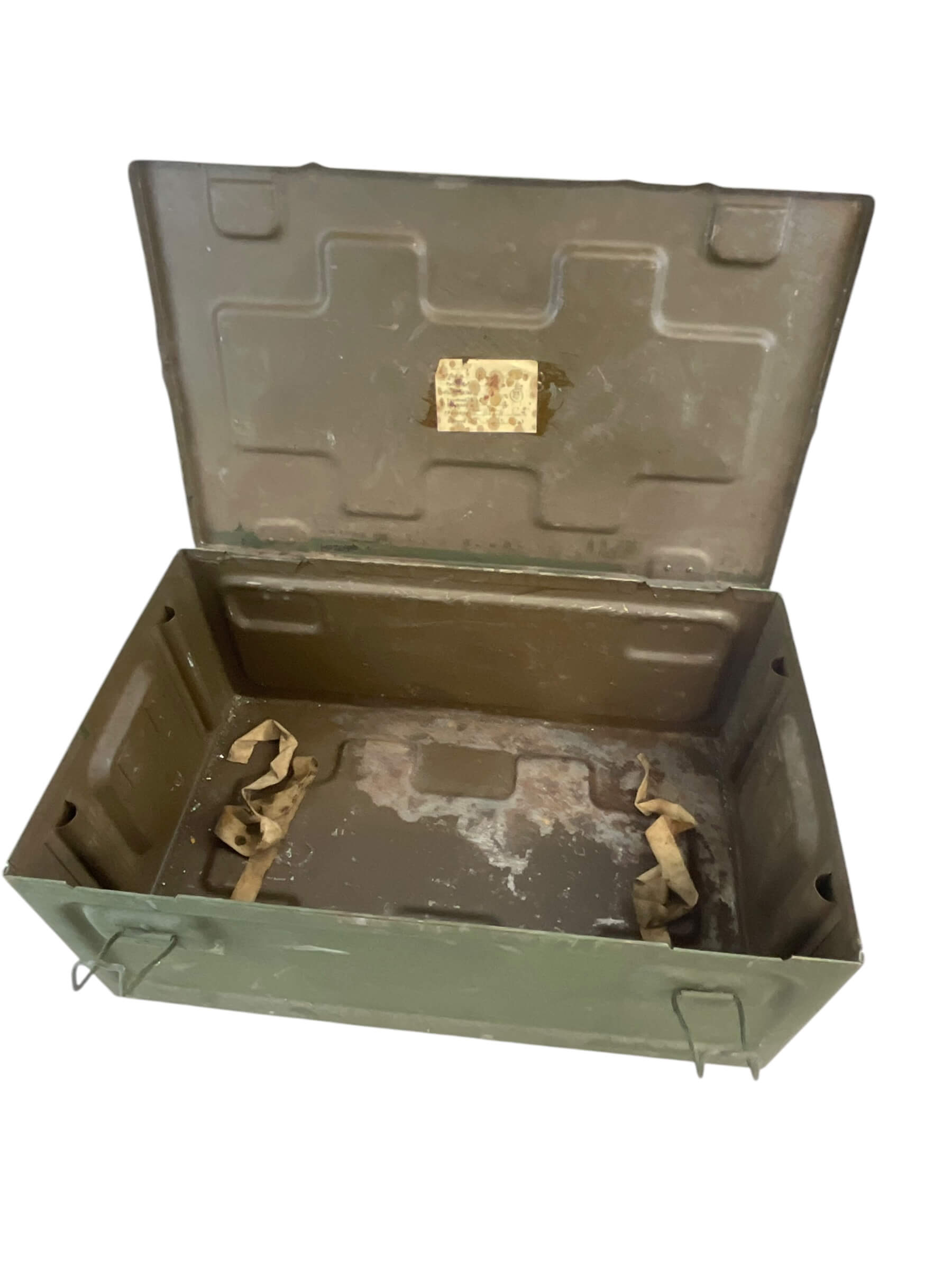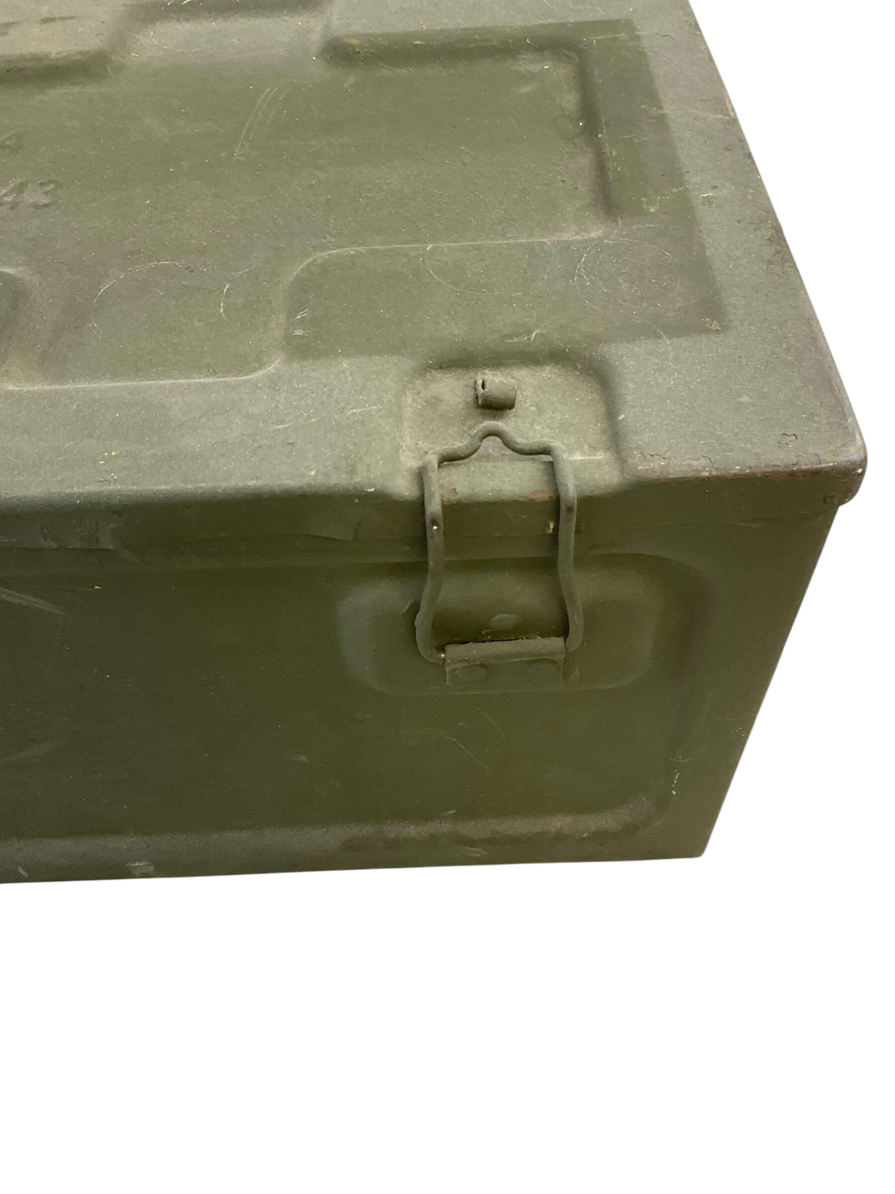 This is an authentic WW2 British Large Ammo Box, dated back to 1943, a crucial year in the course of the Second World War. Made with robust and sturdy metal, it once held ammunition for British forces. Now empty, it serves as a remarkable piece of history that has stood the test of time. Despite its age, the box retains its original green paint and features, including the secure latch and handle. The 1943 date and military markings are clearly visible, adding to the authenticity of this piece. This item is not just a simple box, but a tangible connection to the past, a reminder of the challenges faced and overcome by the brave men and women during World War II. It’s a perfect collector’s item for history buffs or military enthusiasts.
