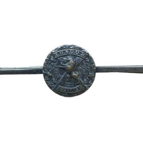 This vintage WW2 British London Scottish Tie Clip Lapel Pin is a remarkable piece of memorabilia that pays homage to the brave soldiers of the London Scottish Regiment. Elegantly crafted, this accessory features intricate detailing and the distinctive regimental insignia, embodying the rich military history and pride of its era. The tie clip is designed to securely hold your tie in place while the lapel pin adds a touch of distinction to any outfit. Whether you are a history enthusiast, a collector of military artifacts, or seeking a meaningful gift, this tie clip lapel pin is a perfect blend of style and legacy. Its durable construction ensures it stands the test of time, making it a cherished keepsake for generations. Display your admiration for the valiant efforts of the London Scottish Regiment with this exquisite and historically significant piece.