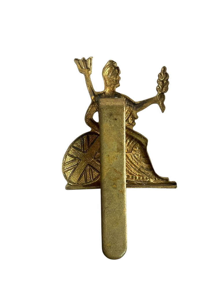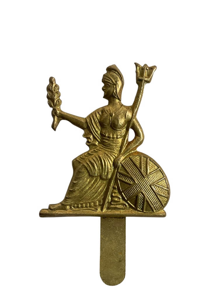 The WW2 British Norfolk Regiment Cap Badge is a noteworthy military insignia hailing from the World War II era. Crafted exclusively for soldiers of the Norfolk Regiment, this badge was typically affixed to regiment caps amongst soldiers ranking from Privates to Non-Commissioned Officers. The design of the badge includes the Britannia figure, a classic symbol of British nationalism, and the signature emblem of the Norfolk regiment. The badge also displays a scroll with the motto “Vis Unita Fortior,” translated as “Strength United is Stronger.” Made predominantly from brass with a slightly convex shape, these badges exemplify the attention to detail and the rich symbolism characteristic of World War II military regalia. While an essential part of British military history, these badges are also treasured by historical enthusiasts, military historians, and collectors of World War II memorabilia. Please note that original badges hold more historical value than reproductions.