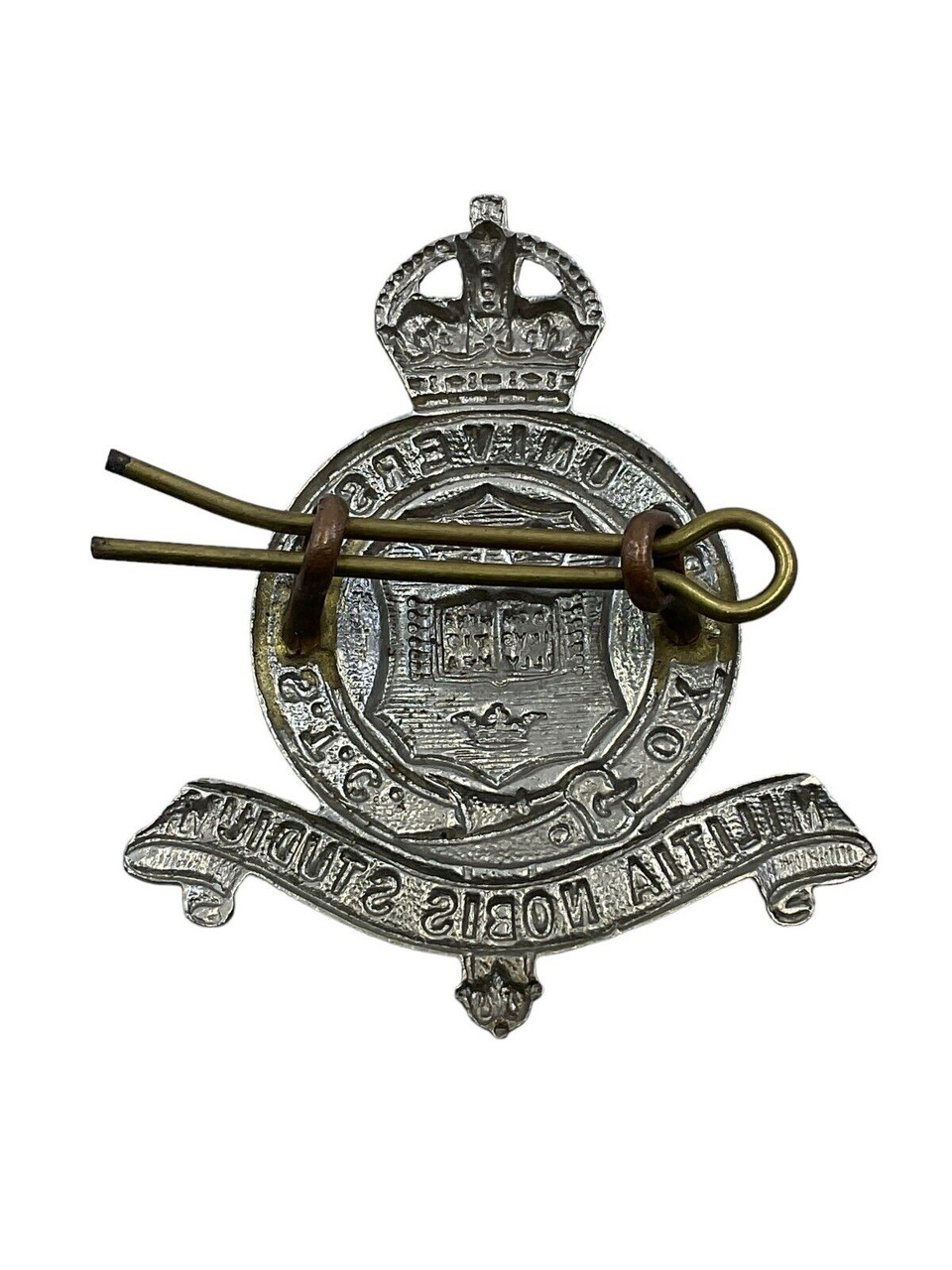 The WW2 British Oxford University STC (Senior Training Corps) Cap Badge is a historic military insignia from the era of the Second World War. This emblem represents the prestigious Senior Training Corps at Oxford University, established to prepare students for leadership roles within the British Armed Forces. Crafted with careful attention to detail, the badge typically features the university’s crest and other traditional symbols of academia and military service, signifying a blend of intellectual and martial rigor. The cap badge would have been proudly worn by cadets, symbolizing their commitment to defending the nation while pursuing higher education. Collectors and history enthusiasts cherish such artifacts for their connection to the rich heritage of one of the world’s most renowned universities and their insightful glimpse into the wartime experiences of its members. This cap badge stands as a reminder of the contributions made by young intellectuals to the war effort, embodying both honor and tradition.