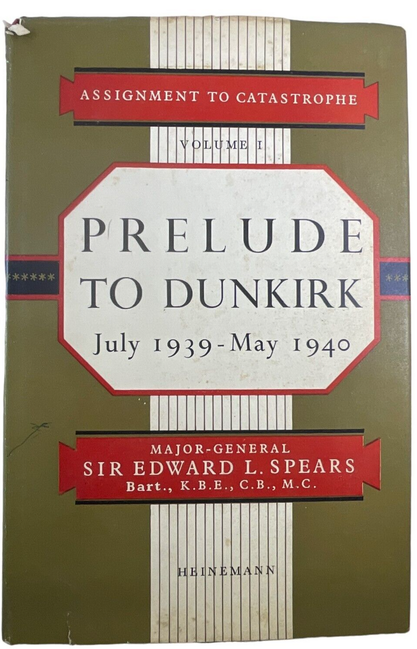 This is a used hardcover WW2 British Prelude to Dunkirk Vol 1 Assignment to Catastrophe Major General Sir Edward L Spears Bart KBE CB MC Reference Book. Total of 332 pages with lots of pictures and information.