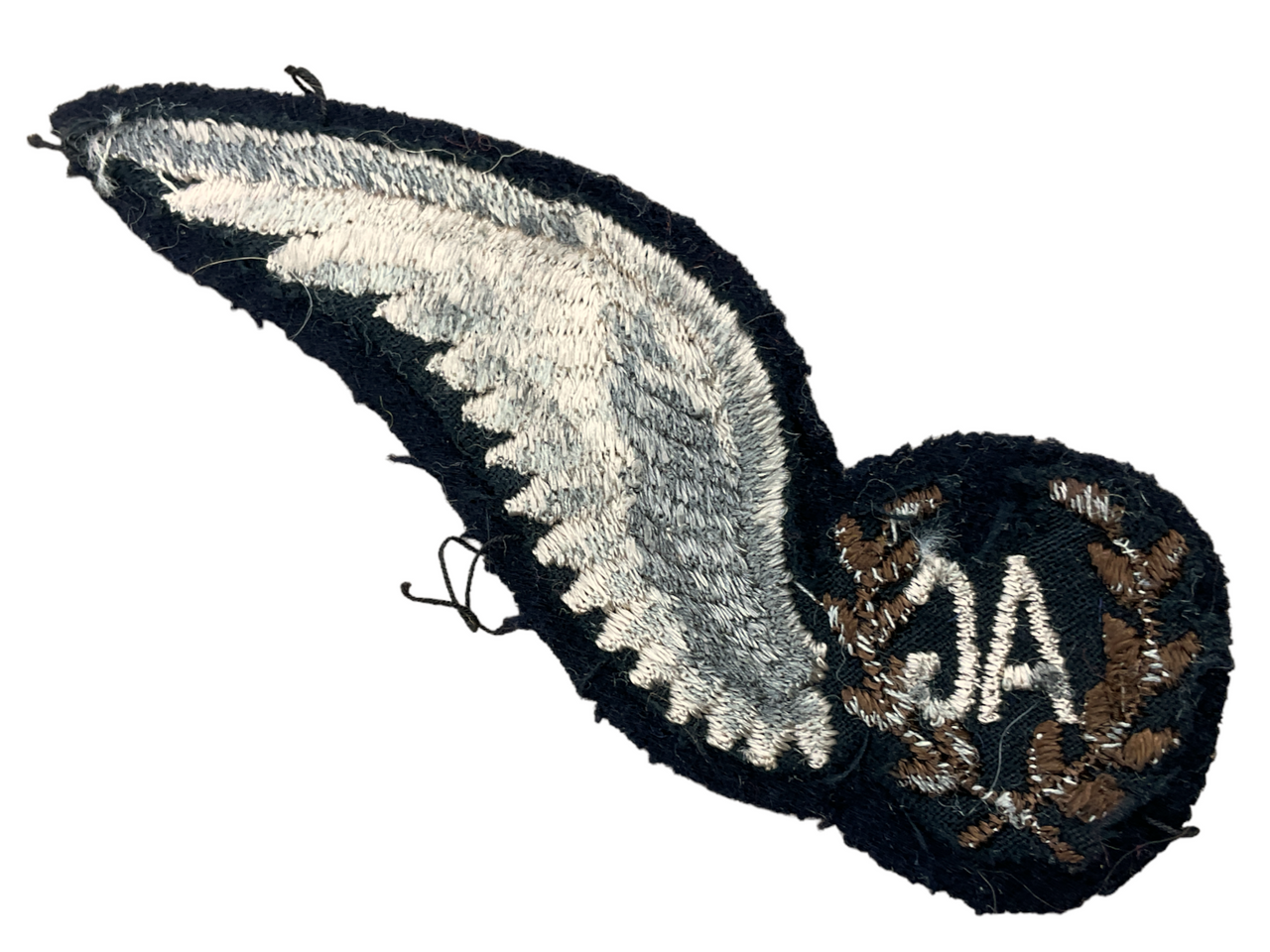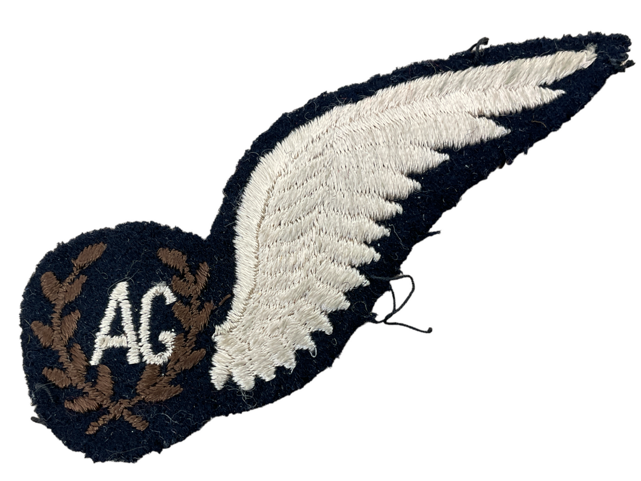 The WW2 British RAF Air Gunner Half Wing is a distinctive military insignia awarded to air gunners who served in the Royal Air Force during World War II. Crafted from embroidered fabric, this half wing features a single wing and a centrally placed letter “AG” encircled by a laurel wreath, symbolizing the valor and precision of the aircrew gunners. Worn proudly on the left breast of the uniform, it signifies the critical role these brave individuals played in aerial combat, defending bombers from enemy fighters. The design serves not only as a mark of honor and skill but also as a historic emblem representing the courage and dedication of those who protected the skies during one of history’s most challenging periods. Collectors and historians highly value this badge, which remains a poignant reminder of the sacrifices and contributions of RAF personnel during the war.