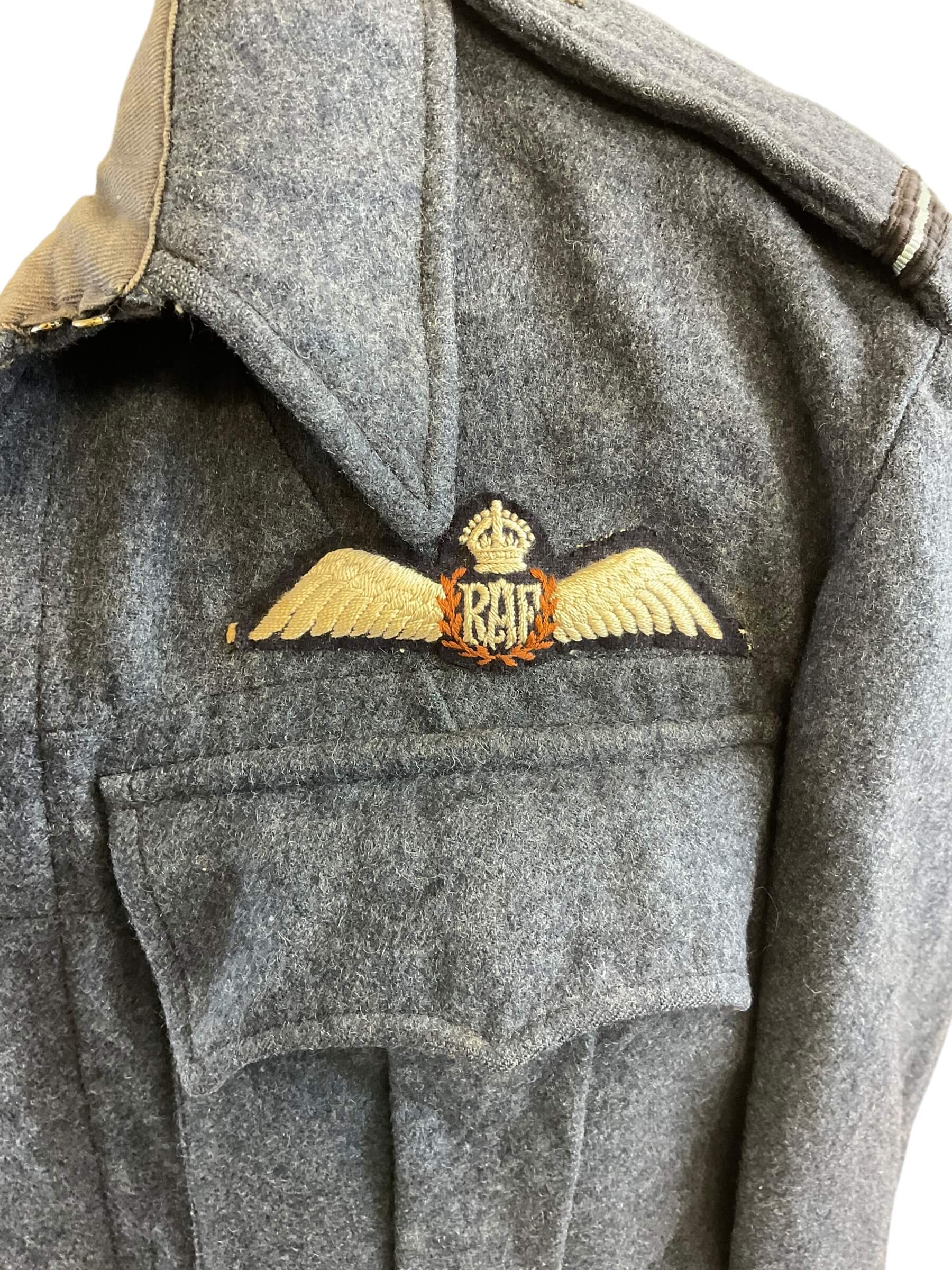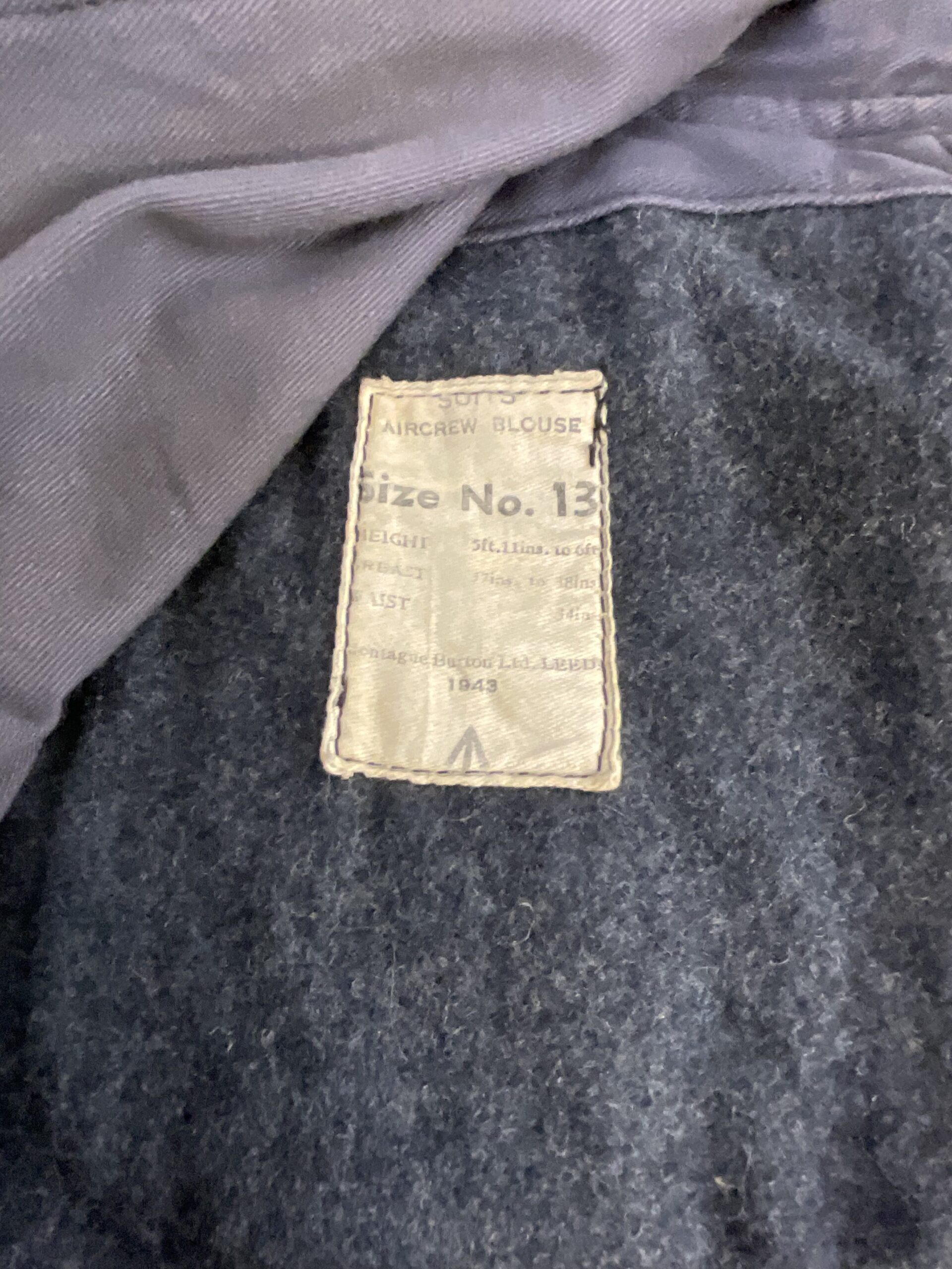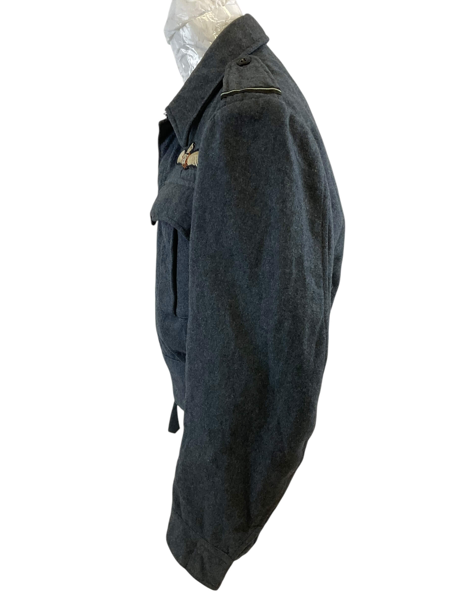 This particular item is a WW2 British RAF (Royal Air Force) Battle Dress Jacket, designed explicitly for pilots. The jacket is a sizable 13, making it a substantial piece of military memorabilia. Dating back to 1943, during the peak of World War II, this jacket is not just an article of clothing but a piece of history. The RAF battle dress jacket is designed for durability and functionality, reflecting the formidable conditions the pilots had to endure. It features multiple pockets, a tailored fit to allow for maneuverability, and a distinct military style that is both austere and dignified. This jacket is a preserved artifact, offering a glimpse into the lives of those who served in the RAF during one of the most significant global conflicts of the 20th century.