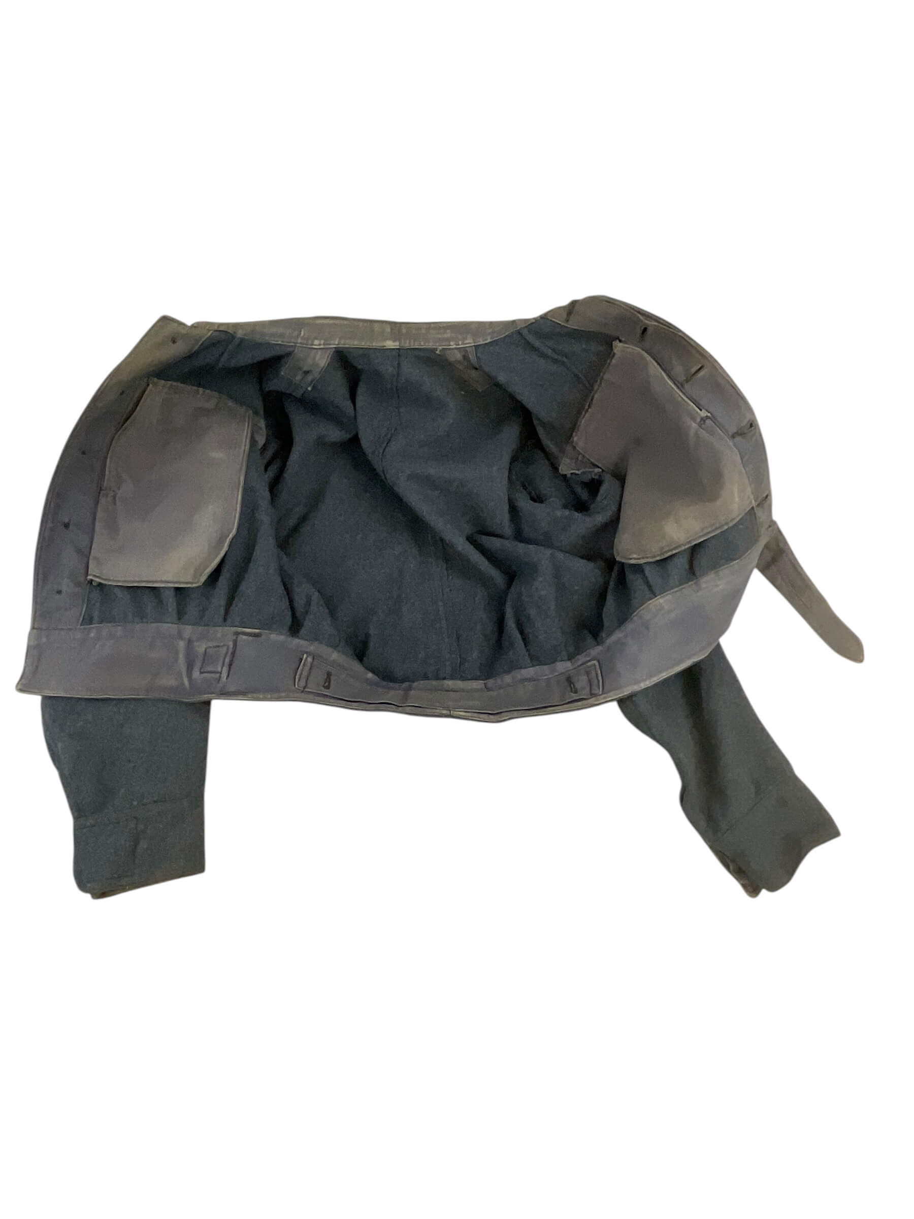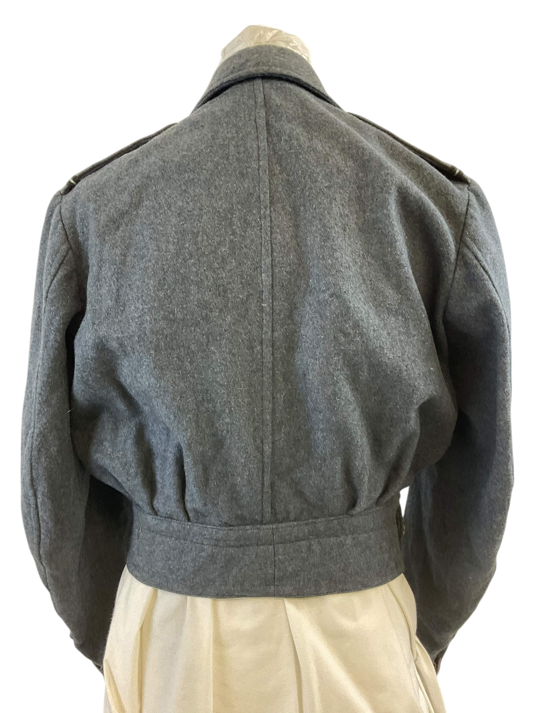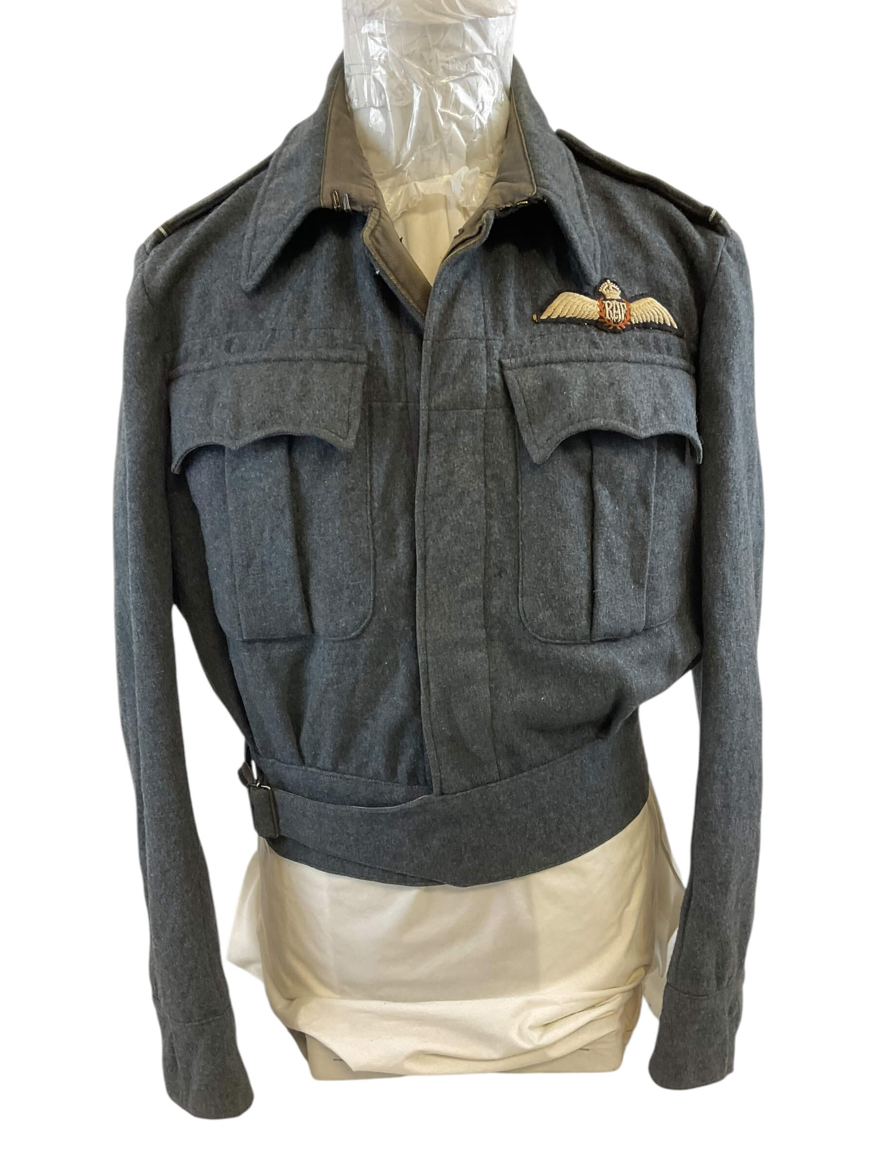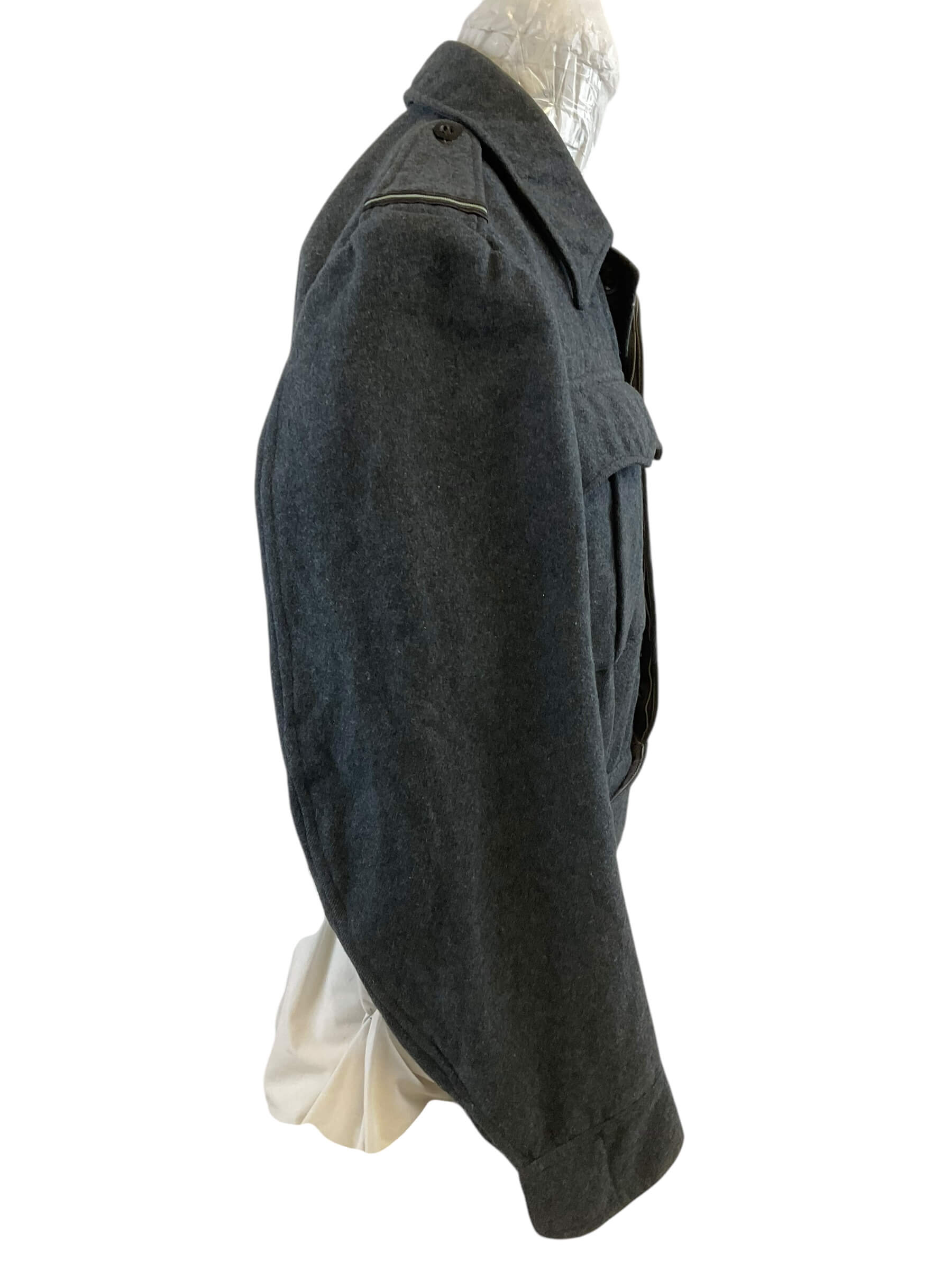 This particular item is a WW2 British RAF (Royal Air Force) Battle Dress Jacket, designed explicitly for pilots. The jacket is a sizable 13, making it a substantial piece of military memorabilia. Dating back to 1943, during the peak of World War II, this jacket is not just an article of clothing but a piece of history. The RAF battle dress jacket is designed for durability and functionality, reflecting the formidable conditions the pilots had to endure. It features multiple pockets, a tailored fit to allow for maneuverability, and a distinct military style that is both austere and dignified. This jacket is a preserved artifact, offering a glimpse into the lives of those who served in the RAF during one of the most significant global conflicts of the 20th century.