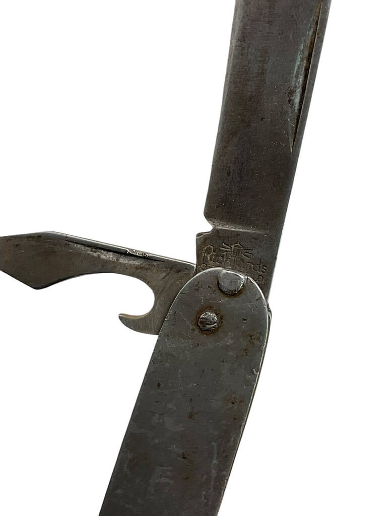 The WW2 British RAF Escape Boot Survival Folding Knife is a specialized tool issued to Royal Air Force aircrew during the Second World War. Designed for practical use in survival situations, this folding knife was commonly incorporated into escape boots, which featured a detachable upper section to aid airmen evading capture. The knife typically features a single, folding steel blade with a slim profile, allowing for discreet storage in a specially designed pouch or compartment within the boot. It was intended for basic survival tasks such as cutting through obstacles, preparing food, or constructing shelter. The knife’s construction prioritizes both compactness and durability, suitable for the harsh conditions encountered by downed aircrew behind enemy lines. This type of survival equipment played a significant role in British aircrew issue gear as part of broader escape and evasion protocols during WWII. The item reflects the adaptation of military gear to enhance airmen’s chances of survival.