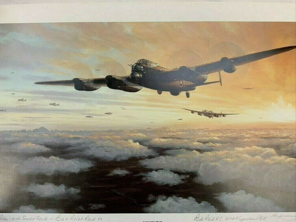 WW2 British RAF Lancaster Dusk Victoria Cross Winner Signed Print