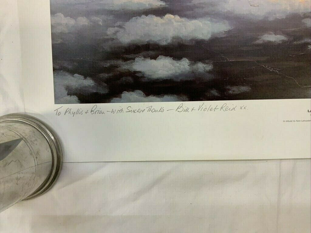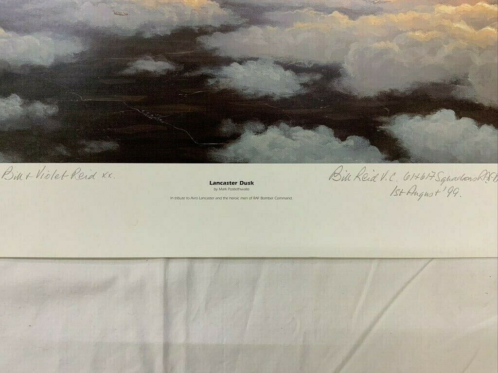 WW2 British RAF Lancaster Dusk Victoria Cross Winner Signed Print. Size is 20 x 27 inches