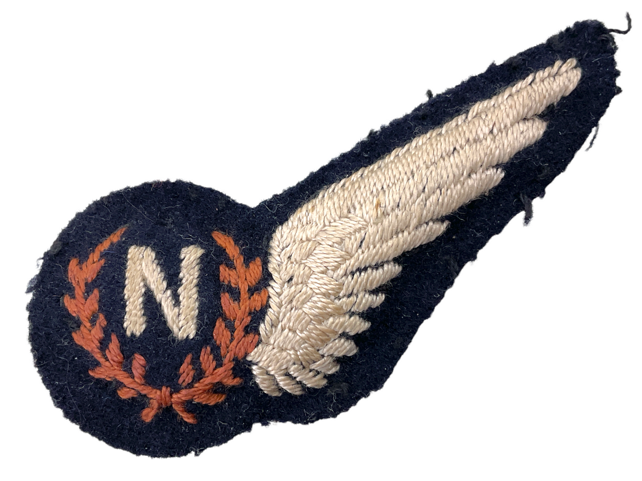 The WW2 British RAF Navigator Half Wing Padded insignia is a poignant and historic military artifact representing the bravery and skill of the Royal Air Force navigators who served during World War II. This meticulously crafted half-wing badge features the distinctive white “N” monogram intricately embroidered in the center of the dark blue wing, which is bordered by a fine gold thread. Enhanced with padded backing, this insignia was designed to be both durable and comfortable when sewn onto the tunics and jackets of the uniformed navigators. Serving as a mark of distinction and experience, it highlights the vital roles these navigators played in securing the skies and contributing to the success of RAF missions. Collectors and enthusiasts alike treasure this badge for its historical significance and craftsmanship, making it a valued emblem of dedication, duty, and the storied legacy of the RAF during a pivotal time in global history.