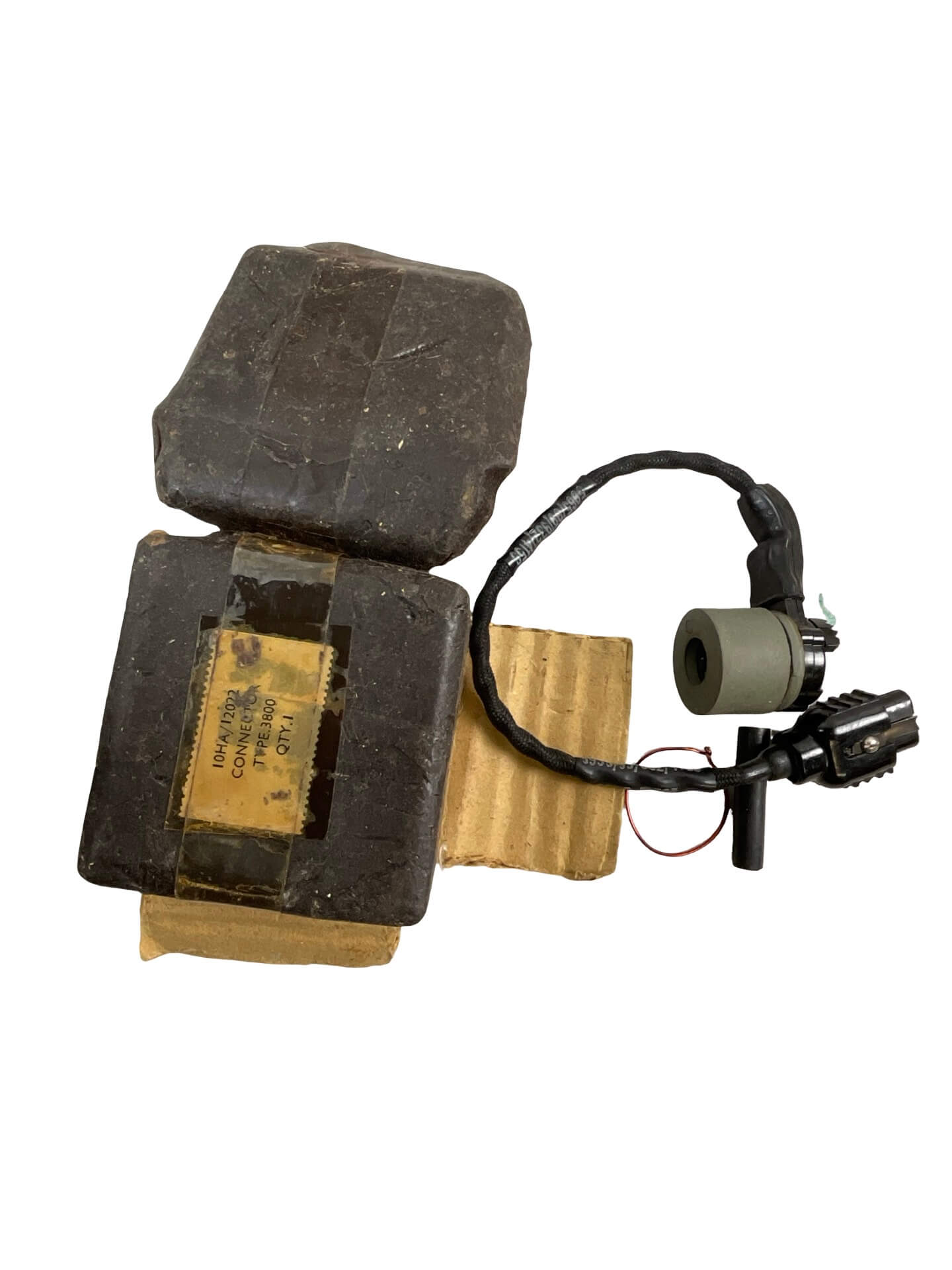 The WW2 British RAF Oxygen Mask Microphone is a component originally designed for use with Royal Air Force oxygen masks during the Second World War. These microphones, typically referred to as type 10A/13466 or 10A/12570, were vital for clear voice transmission between aircrew members in pressurized and noisy cockpit environments. The microphone was usually installed on the Type E or Type G oxygen masks and connected directly to the aircraft’s intercom system. Constructed from durable Bakelite or early phenolic resins, the unit features a robust wiring harness and metal fittings for secure attachment and optimal electrical contact. The design includes a front grille and a weather-resistant seal to protect internal components under operational conditions. This oxygen mask microphone exemplifies the technological advancements of RAF communications equipment during the period and remains of historical interest to collectors and researchers of military aviation artifacts.