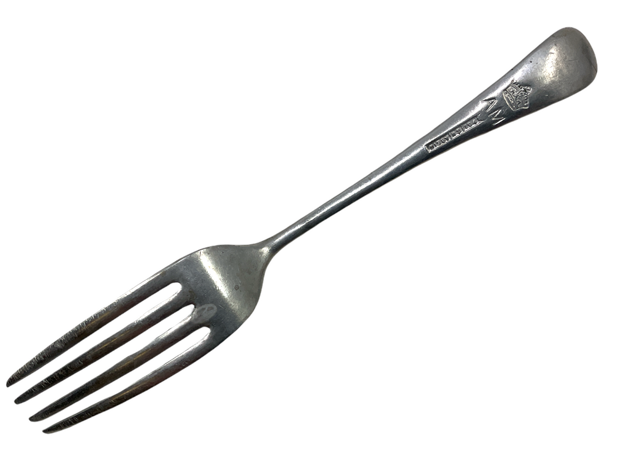 This unique WW2 British RAF RCAF fork, dated 1941, is a remarkable artifact from the era of the Second World War. The fork bears the distinctive markings of the Air Ministry, showcasing its authentic and official use within the Royal Air Force (RAF) and Royal Canadian Air Force (RCAF) mess halls. Crafted with durability and functionality in mind, this utensil not only served practical purposes but also symbolizes the daily lives and resilience of those who served. Its historical significance is further underscored by the 1941 date stamp, a pivotal year in the war. Whether you are a history enthusiast, a collector of military memorabilia, or simply intrigued by vintage artifacts, this Air Ministry-marked fork offers a fascinating glimpse into the past. Preserved in fine condition, it stands as a testament to the era’s craftsmanship and the enduring spirit of the Allied forces.