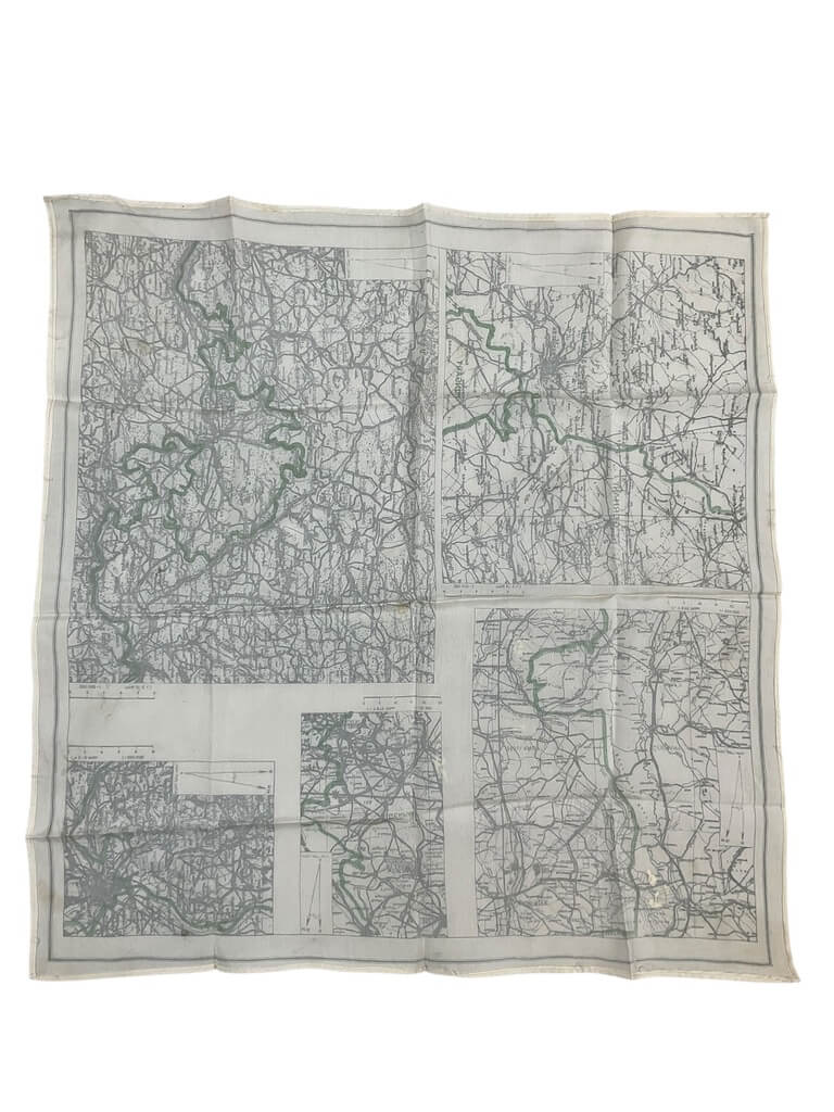 The WW2 British RAF Silk Escape Map Europe is a historical artefact from the Second World War, specifically designed for the Royal Air Force (RAF) personnel. This meticulously detailed map provides comprehensive geographic information of Europe, emphasising regions where the RAF were active. The map’s most distinguishing feature is its material – it is printed on silk, which is durable, silent, and water-resistant. This choice ensured the map could be concealed easily on a person’s body, survive rugged conditions, and be consulted quietly to avoid detection. The map provided indispensable aid for RAF forces attempting to escape from hostile territories or navigate through unfamiliar terrain. It features the contemporary political boundaries, significant landmarks, and geographical details of Europe during the war. The WW2 British RAF Silk Escape Map Europe is a rich piece of military history, symbolising a time of conflict, resilience, and innovation.