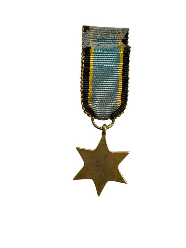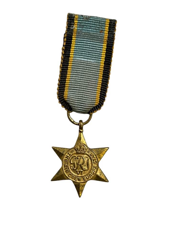The WW2 British RAF The Air Crew Europe Miniature Star Medal is a prestigious and symbolic artifact from the Second World War. This miniaturized replica honors the heroic British Royal Air Force (RAF) aircrew members who served in the European theatre during the conflict. The medal features a six-pointed star, symbolizing the six years of war, and is crafted with intricate detail that pays homage to the original award. The ribbon proudly displays the RAF colors, signifying the bravery and dedication of those who risked their lives for their nation. This miniature medal is not only a collector’s item, but also a tribute to the immense courage, resilience, and sacrifice of the RAF aircrew members in the face of adversity. It serves as a powerful reminder of our history and the heroes who shaped it.