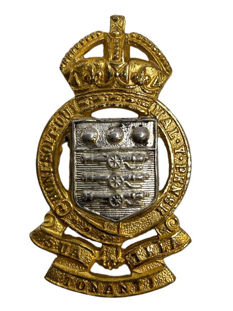 This exquisite World War II British RAOC (Royal Army Ordnance Corps) Officers Cap Badge is a gleaming piece of military history. Crafted from sophisticated gilt, this badge was worn by officers, signifying their vital role within the Ordnance Corps. The RAOC was responsible for the supply and maintenance of weapons, ammunition, and military equipment, making this insignia a symbol of logistical excellence. The intricate design features a crowned shield flanked by laurel leaves, embodying honor and valor, while the detailed craftsmanship reflects the pride and dedication of the British military during the Second World War. This badge not only highlights the esteemed heritage of the RAOC but also serves as a collectible item for military history enthusiasts. Whether for a historian, a collector, or a World War II aficionado, this RAOC Officers Cap Badge represents a tangible connection to the courage and duty of its era.