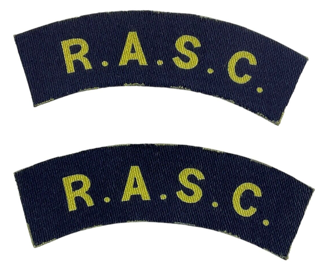 WW2 British RASC Royal Army Service Corps Canvas Printed Shoulder Titles Pair
