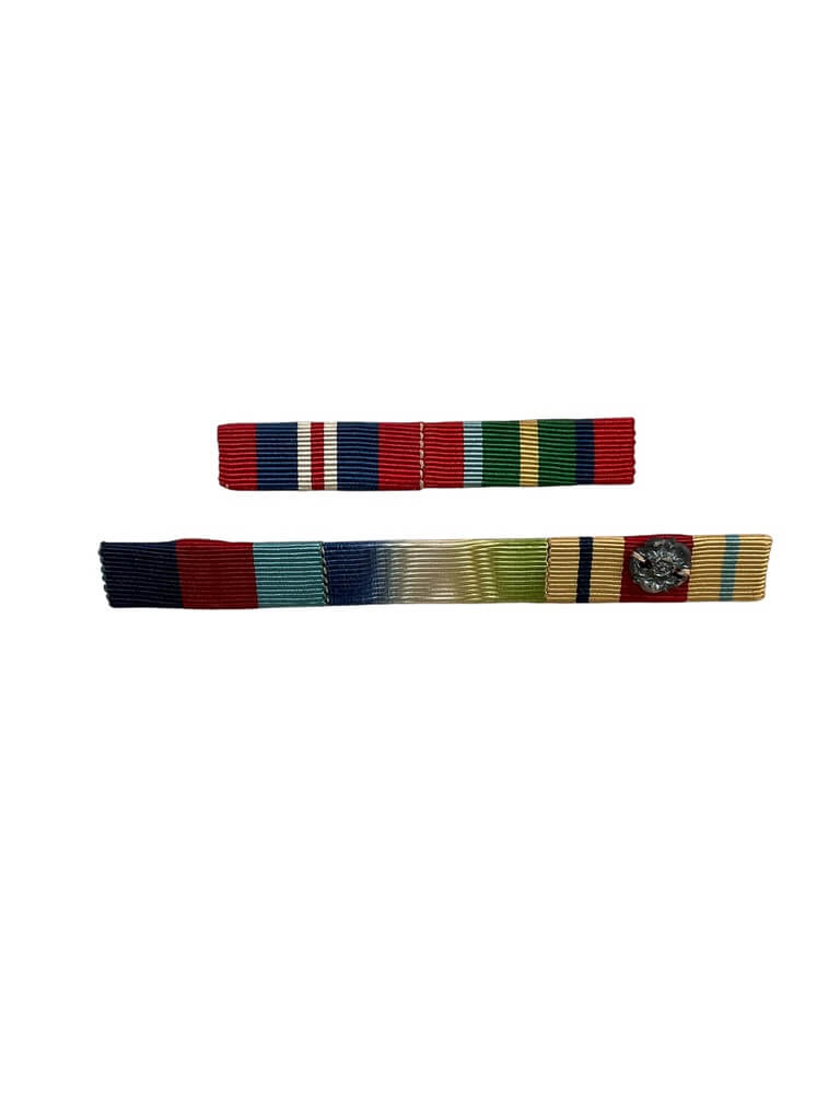 The WW2 British Ribbon Bars are a significant historical artifact representative of the dedication and bravery displayed by military personnel during World War II. These ribbon bars signify the prestigious military awards and decorations earned by the British soldiers for their valor and service throughout the conflict. Each ribbon’s color scheme, design, and pattern reflect a specific medal’s values, accomplished services, and awarded ranks. This tangible testament of heroism is primarily made of ribbon fabric, precisely cut, arranged in the correct order of precedence, and fitted into a metal bar for wearing on military uniforms. Available bars may vary in the number of ribbons, based on the original owner’s awarded honors. As a notable symbol of military history, the WW2 British Ribbon Bars provide a unique insight into the individual narratives of wartime courage, sacrifice, and commitment intrinsic to Britain’s war effort.