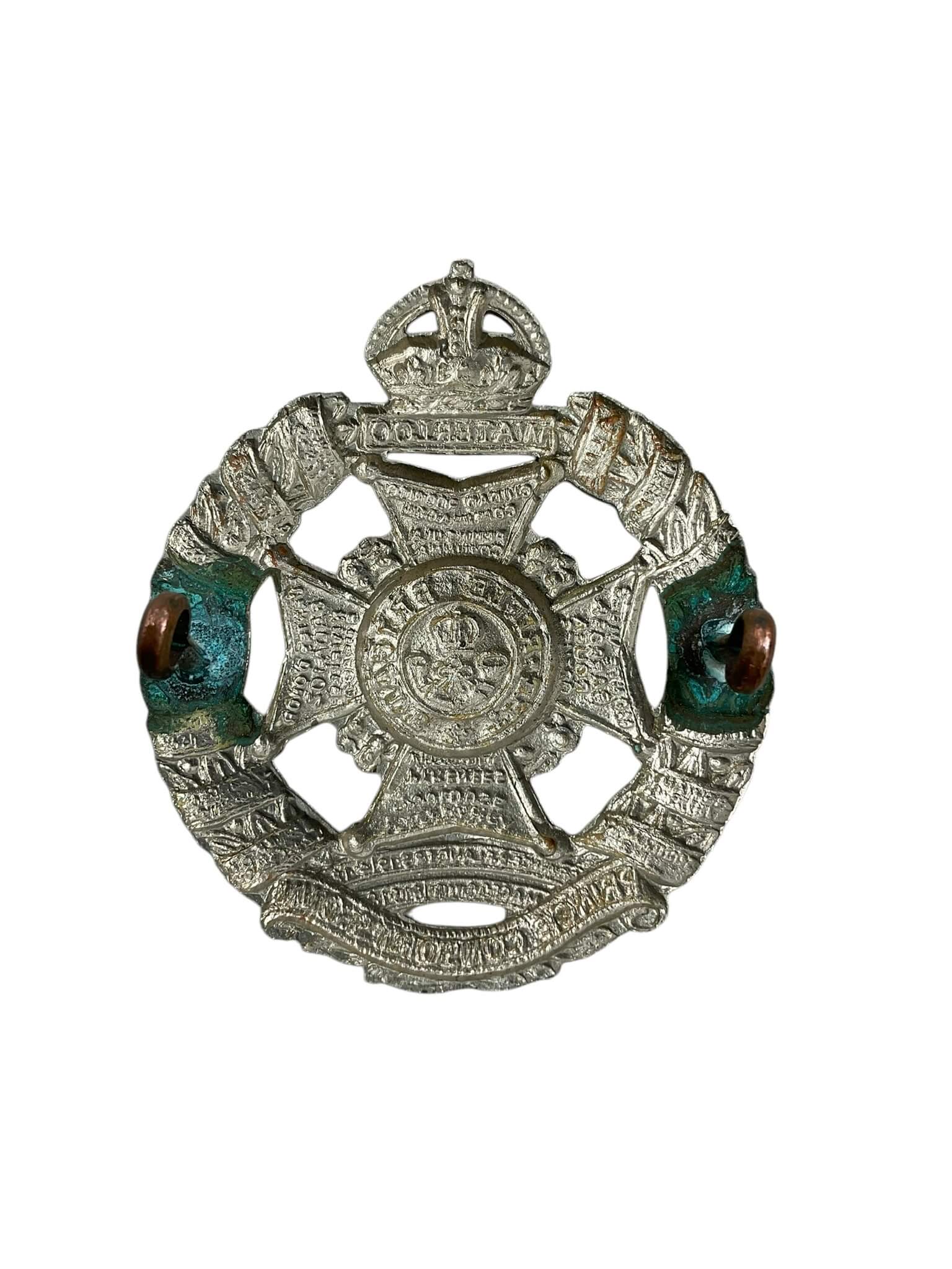 The WW2 British Rifle Brigade Cap Badge is a significant piece of military memorabilia, steeped in history and prestige. This emblem was worn proudly by members of the British Rifle Brigade during the tumultuous years of the Second World War. The badge is meticulously crafted, featuring a silver bugle horn – a symbol of the light infantry – encased within a wreath and topped by a King’s Crown, symbolizing allegiance to the monarch. The words ‘Rifle Brigade’ are inscribed at the bottom. This cap badge serves as a symbol of valour and duty, reflecting the bravery of those who served in one of Britain’s most distinguished fighting units. It’s a cherished collector’s item, ideal for historians, military enthusiasts or those with a personal connection to the Brigade.