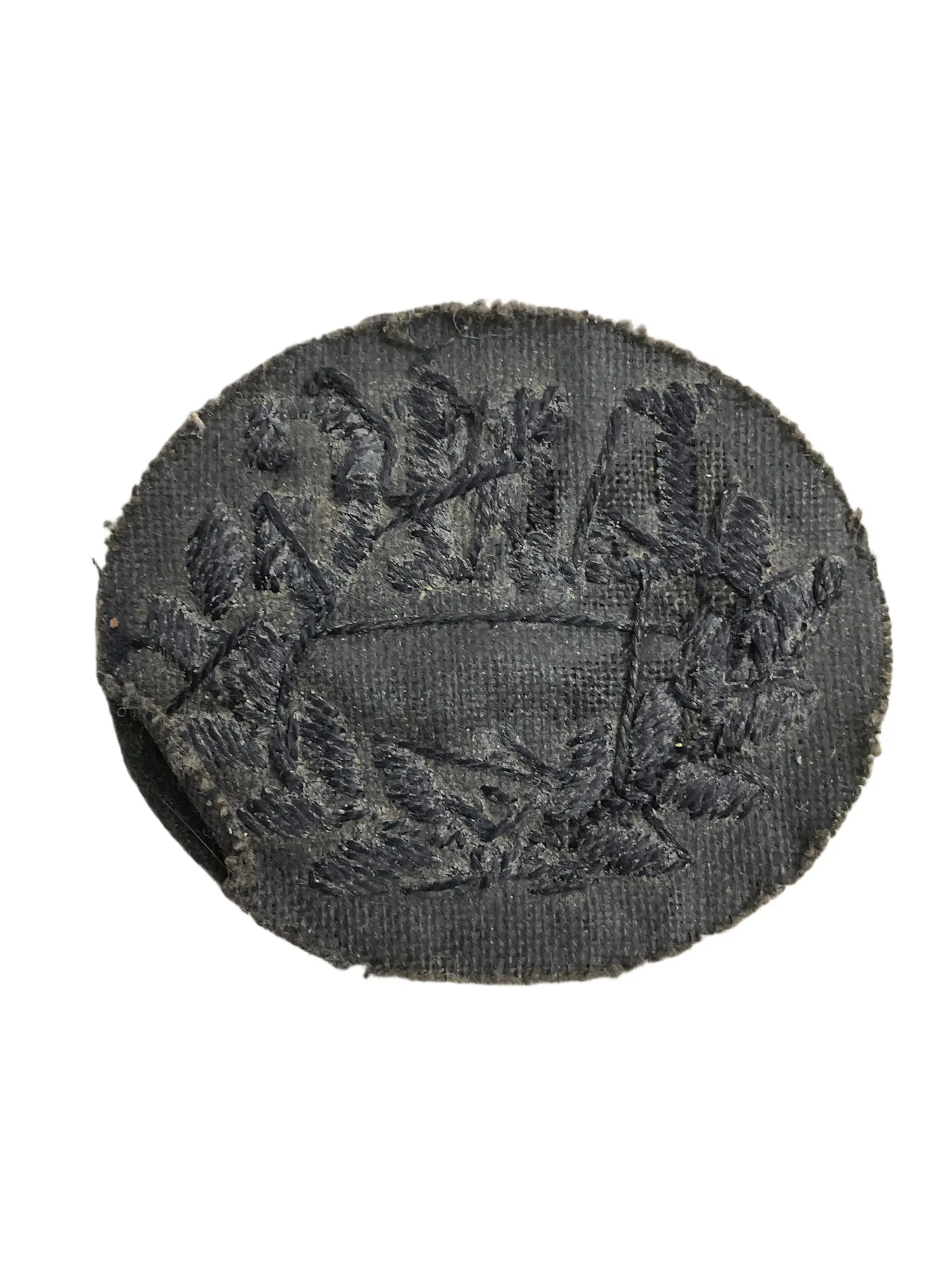 The WW2 British Rifle Regiment Light Machine Gun Trade Badge is an embroidered insignia issued to qualified members of British rifle regiments who demonstrated proficiency with light machine guns, such as the Bren gun, during the Second World War. Typically worn on the lower sleeve of the battledress blouse, the badge served to identify soldiers with specialized training and skills in machine gun operation and maintenance. Made from dark rifle green wool with a clearly defined light machine gun motif stitched in contrasting thread, this badge reflects the standards and traditions of British Army insignia of the period. Such trade badges played an important role in the recognition of individual expertise within the regiment and contributed to the efficient organization of specialist roles in combat units. Original examples from the Second World War are valued by collectors and historians for their association with specific units and the operational history of the British Army during the conflict.