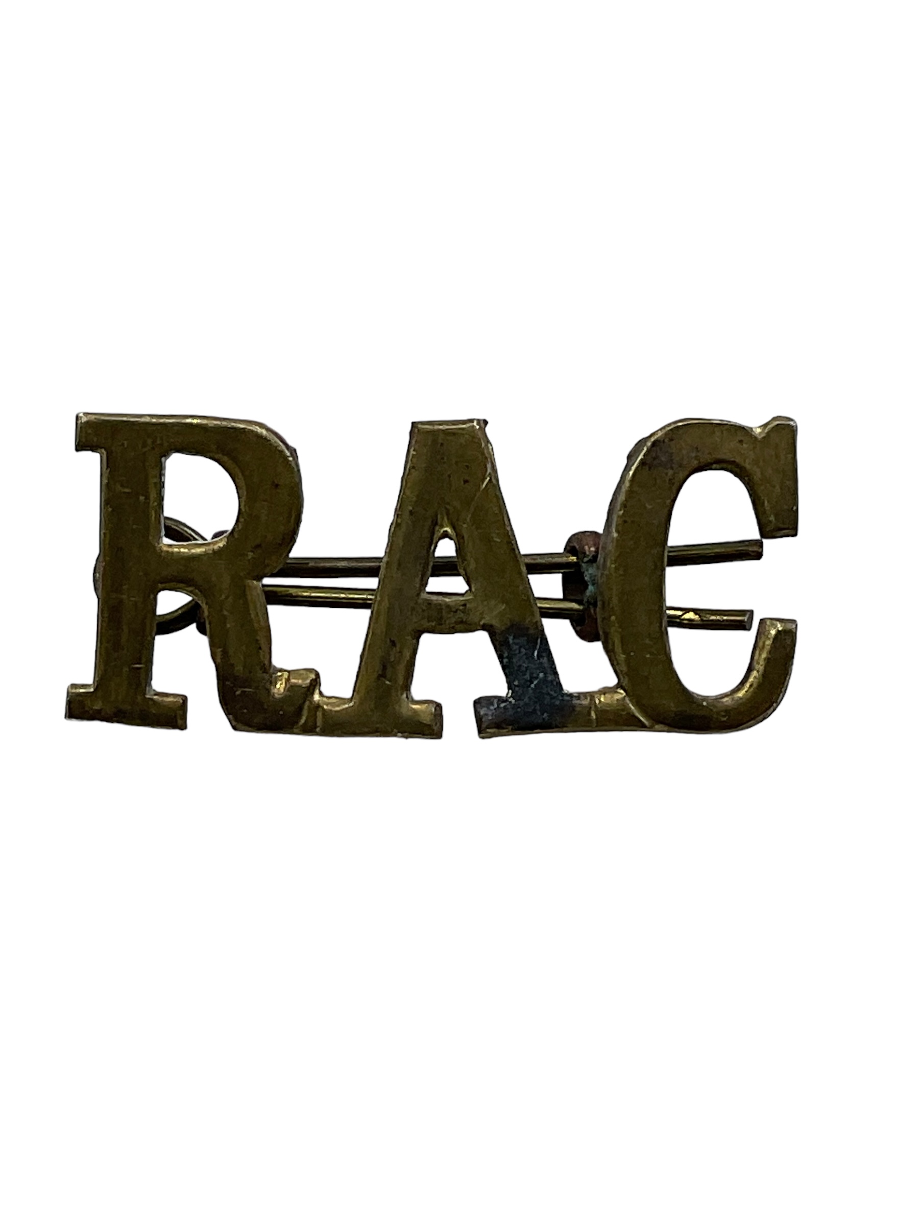 WW2 British Royal Armoured Corps RAC Brass Shoulder Title Insignia Single