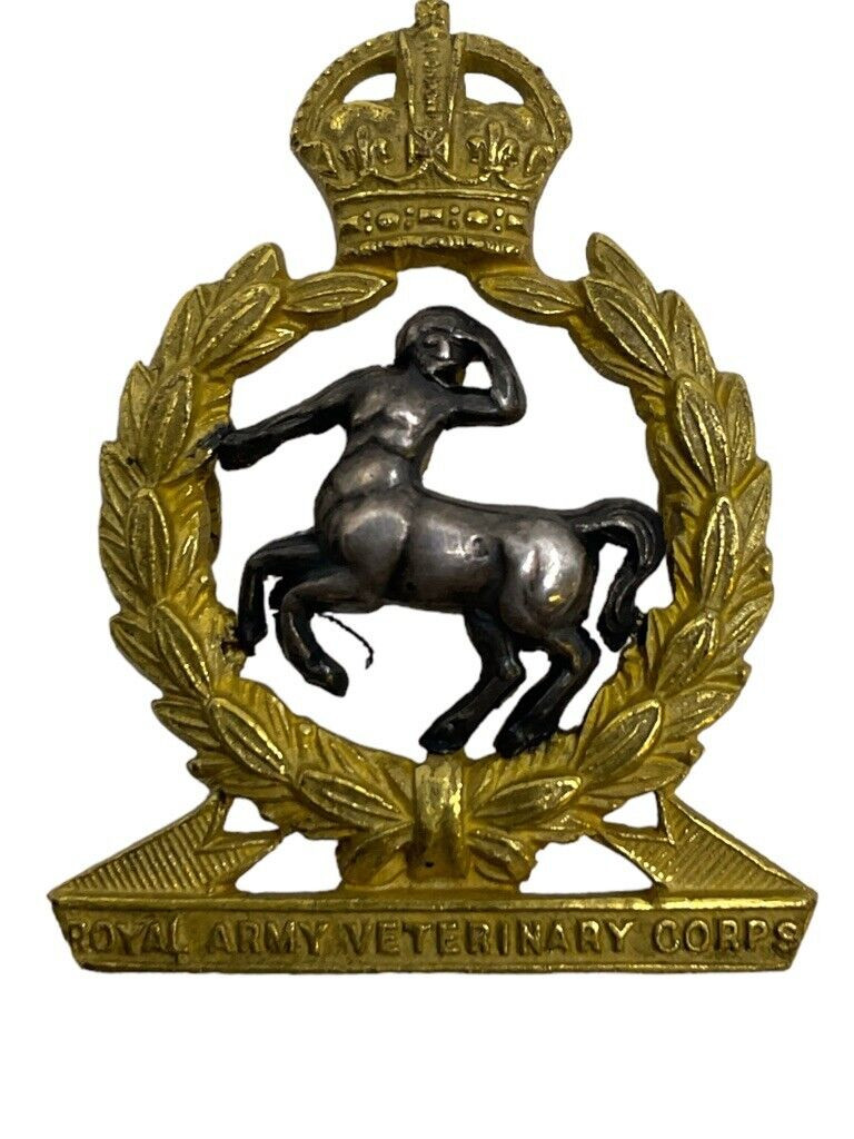 The “WW2 British Royal Army Veterinary Corps Officers Gilt Collar Insignia Single” is a remarkable piece of military history from the Second World War. This unique insignia represents the distinguished Royal Army Veterinary Corps (RAVC), an essential branch dedicated to the care and management of military animals. Crafted with meticulous detail, the insignia is gilt in finish, giving it a striking and elegant appearance. It was traditionally worn by officers on the collar of their uniforms, symbolizing their rank and association with the RAVC. The insignia not only signifies the important role these officers played in maintaining the health and efficiency of war animals, but also serves as a timeless reminder of their dedication and service. This single collar insignia is an excellent collectible for military history enthusiasts and offers a tangible connection to the courageous efforts of the British forces during World War II.