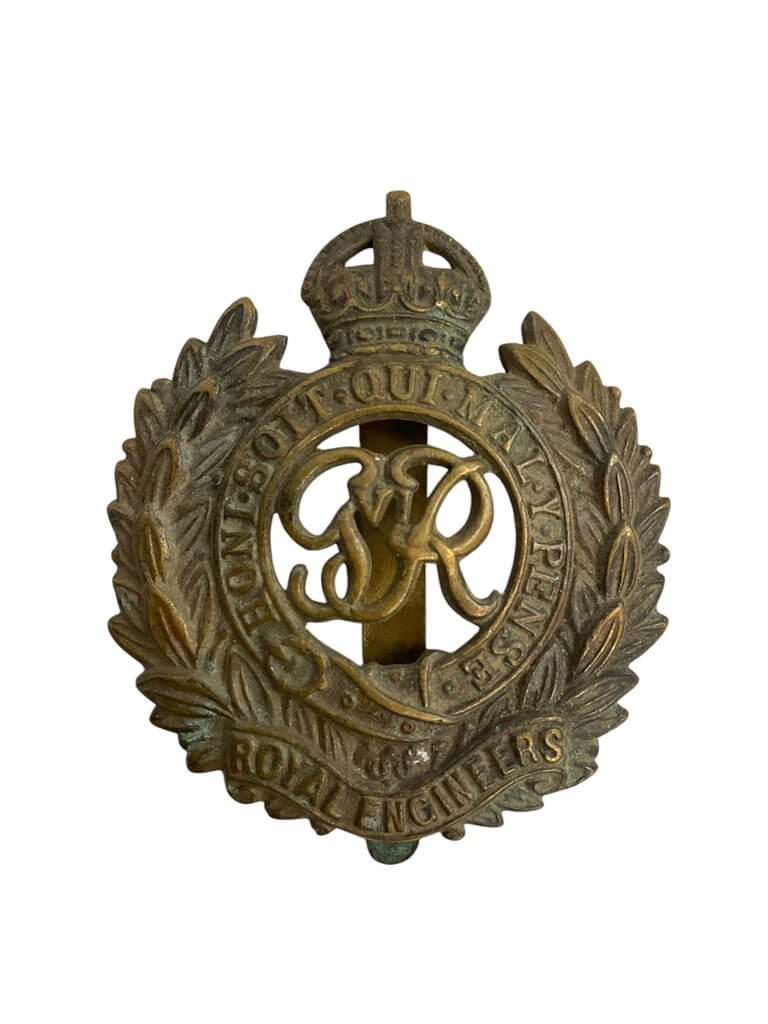 The WW2 British Royal Engineers Cap Badge is a distinctive emblem, a significant piece of British military history. The badge is typically made from brass or bronze and features the Royal Engineers’ iconic George VI cipher, surrounded by a garter inscribed with the regiment’s motto, ‘Ubique Quo Fas Et Gloria Ducunt’ (Everywhere That Right And Glory Lead). Atop the garter sits a regal, detailed crown, signifying royal patronage. The badge was proudly worn by members of the Royal Engineers on their service dress cap during World War II. Collectors and history enthusiasts greatly value this badge due to its rich historical significance and detailed craftsmanship. Its design embodies the courage, honor, and service of the British Royal Engineers who played a crucial role in the wartime efforts.